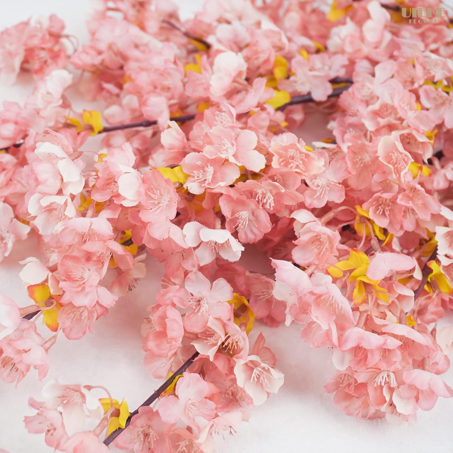 - GOOD THICKNESS: This long stem cherry blossom branches have full color and rich layers. Silk cherry blossom petals are dense in quantity. Flower petals are thin and transparent very strong. Uieke follows the beauty of the natural form of flowers, each petals is naturally curled.