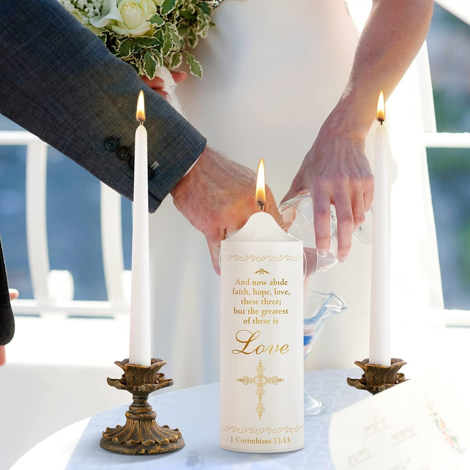 Frienda Unity Candles for Wedding Ceremony Set Wedding Unity Taper Candles Catholic Religious Ceremony Accessories(Charming Style)