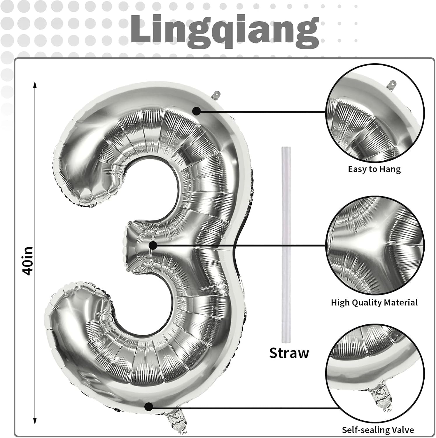 - š Silver Number 3 Balloon š - You will get 1pc 40 inch mylar foil number 3 balloon and 1pc straw. Perfect for 3rd 13th 30th 35th birthday or anniversary party decorations supplies.