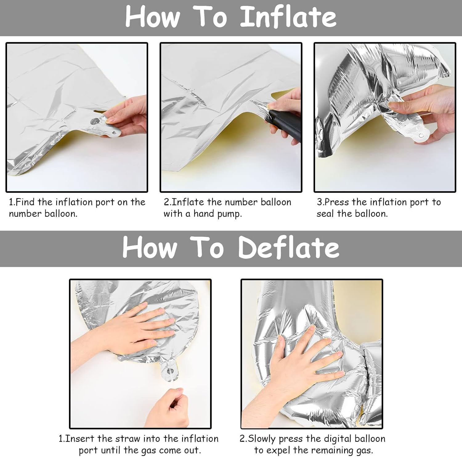 - š Repeated Use š - The silver 8th birthday balloons set contains a straw that can be used to deflate the foil balloon, simply insert the straw into the valve and press gently until the gas is completely expelled. After use, it can be folded and stored for reuse.