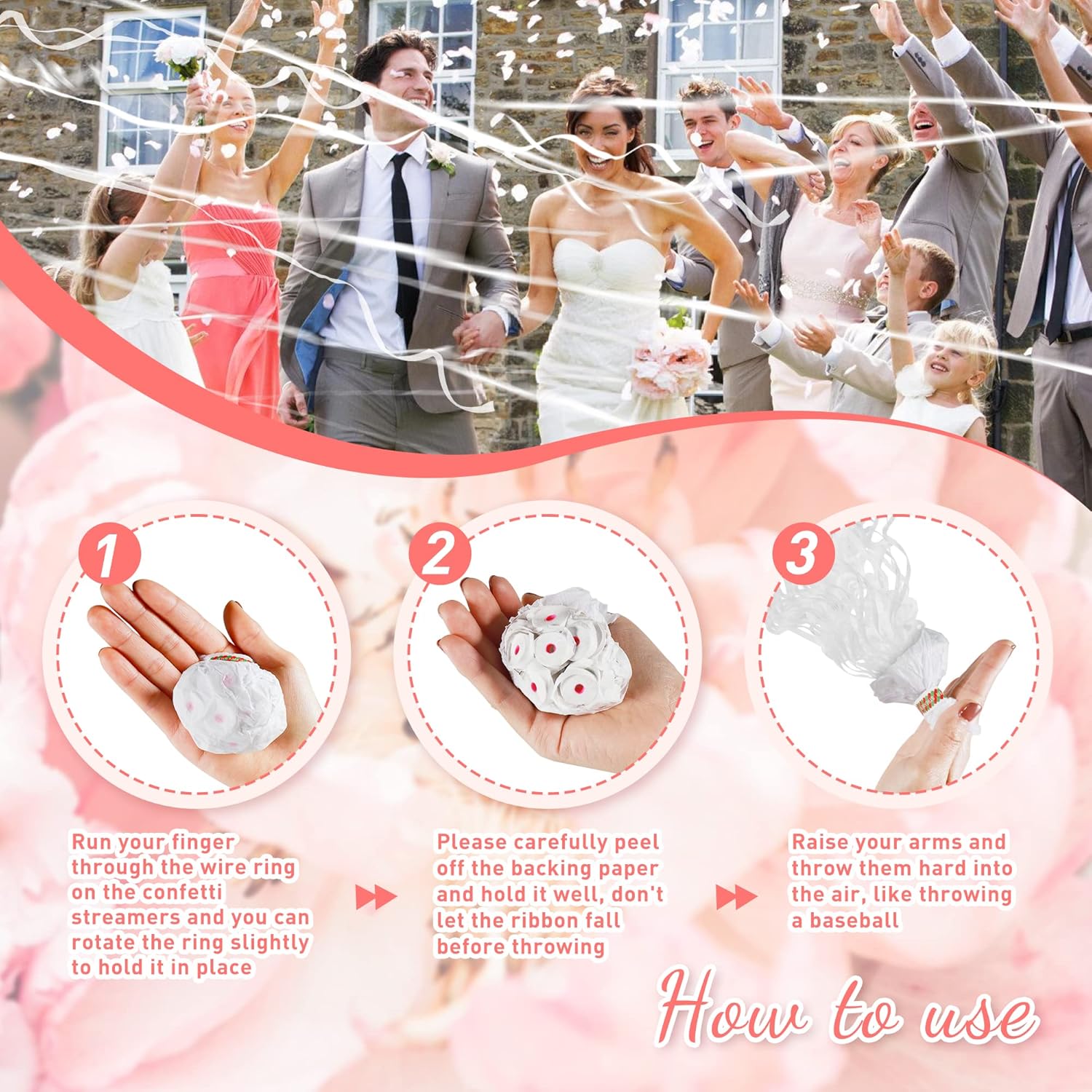 - How To Use: Fix the pull ring of confetti poppers on your finger, then tear the backing paper carefully and throw it hard into the air (not gently, please throw it like a baseball). You can ask many friends to throw them in one direction to make photo exit