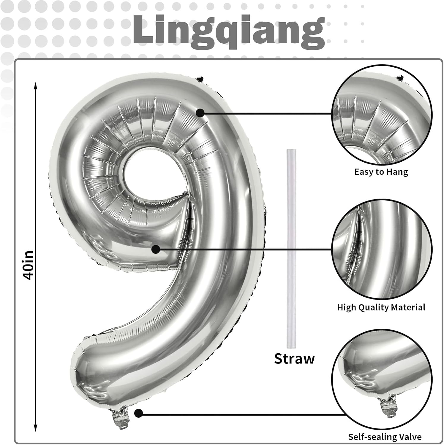 - š Silver Number 9 Balloon š - You will get 1pc 40 inch mylar foil number 9 balloon and 1pc straw. Perfect for 9th 19th 90th birthday or anniversary party decorations supplies.