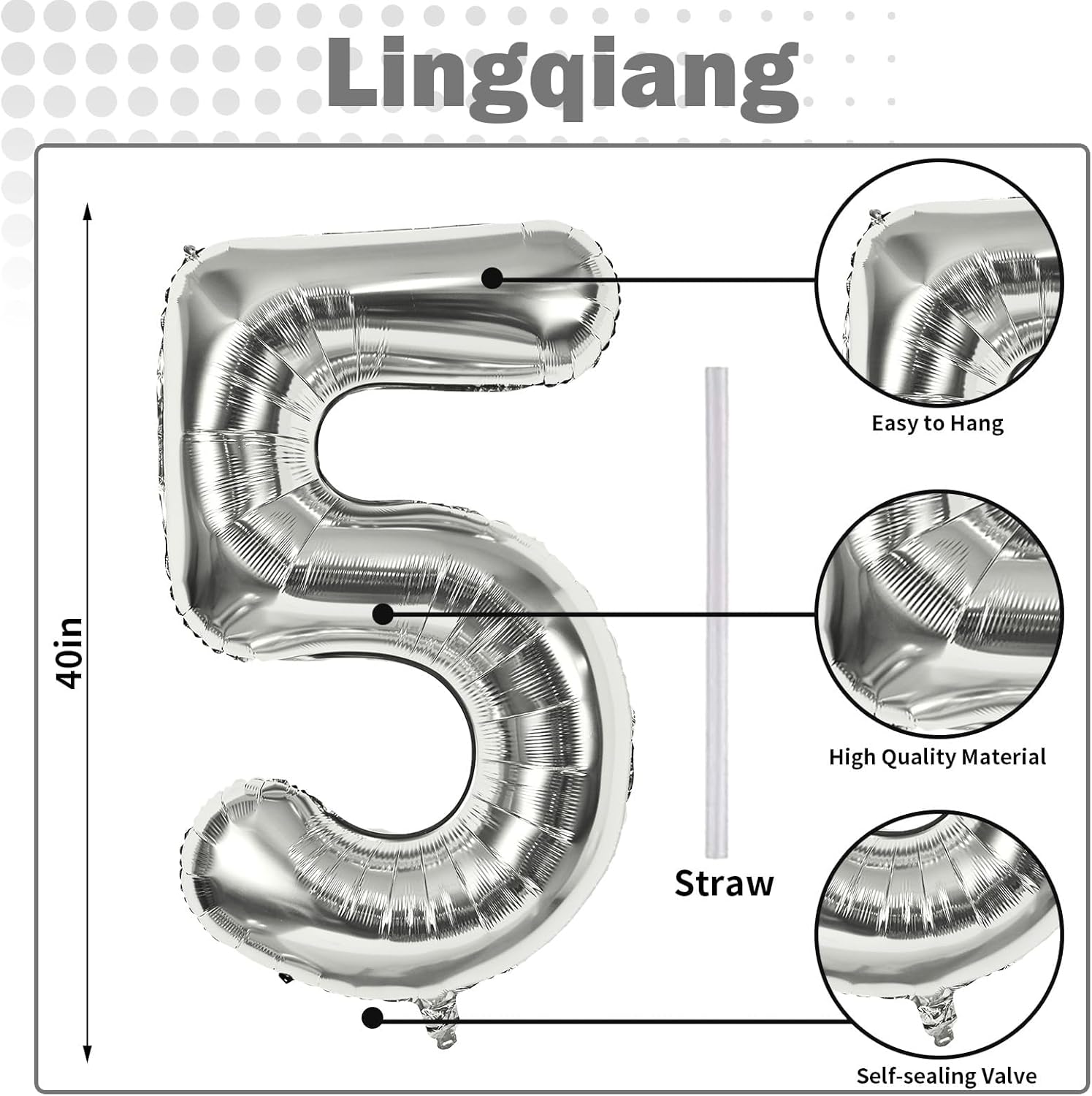 - š Silver Number 5 Balloon š - You will get 1pc 40 inch mylar foil number 5 balloon and 1pc straw. Perfect for 5th 15th 25th 50th 45th birthday or anniversary party decorations supplies.