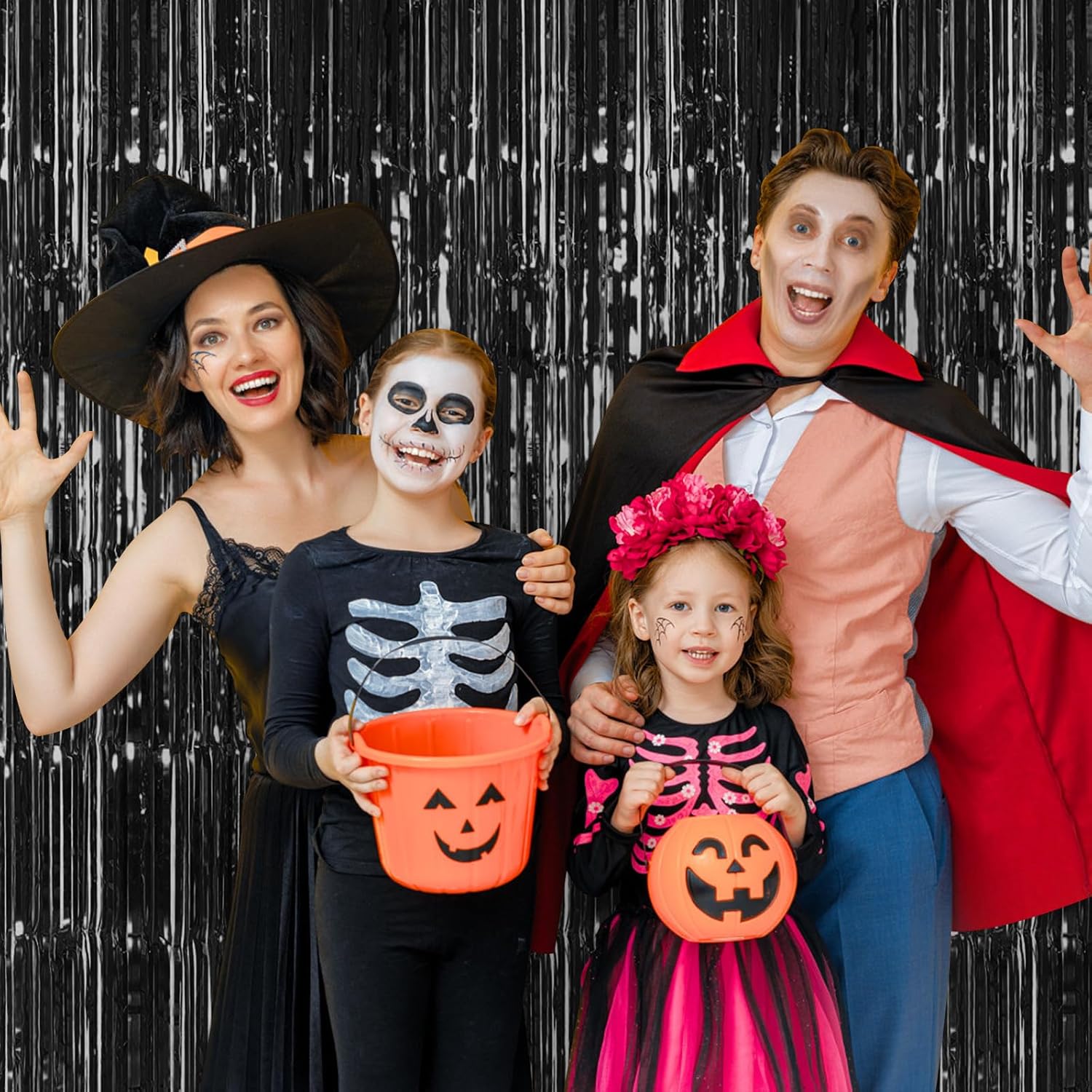 10 Pack Black Backdrop Curtain 3.2ft x 8.2ft Metallic Tinsel Foil Fringe Curtains Photo Booth Background for Birthday Party Decoration Baby Shower Engagement Wedding Christmas Decoration (Black)