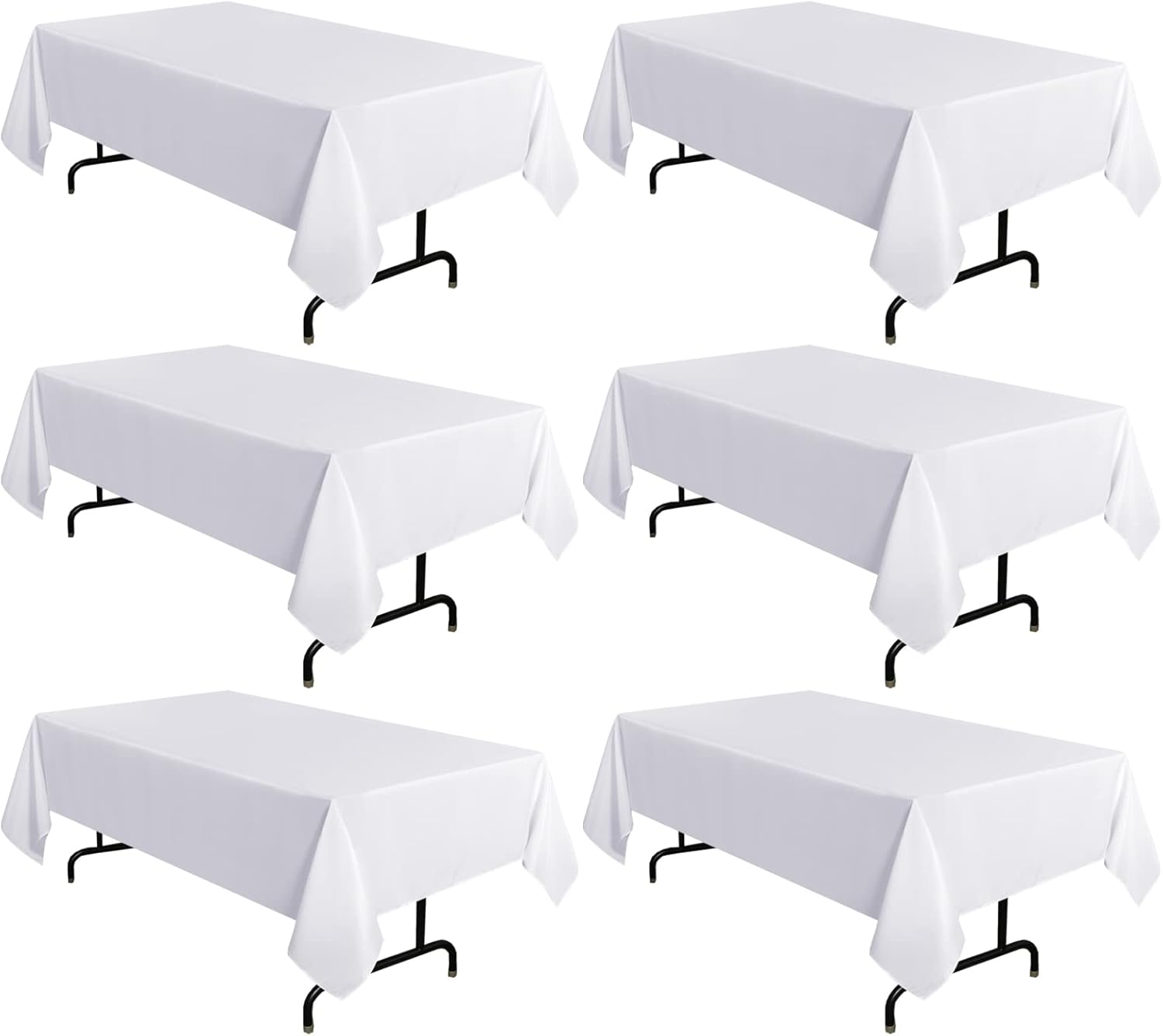sancua 6 Pack White Tablecloth 60 x 102 Inch, Rectangle Table Cloth for 6 Feet Tables - Stain and Wrinkle Resistant Washable Polyester Table Cover for Dining Tables, Buffet Parties and Camping