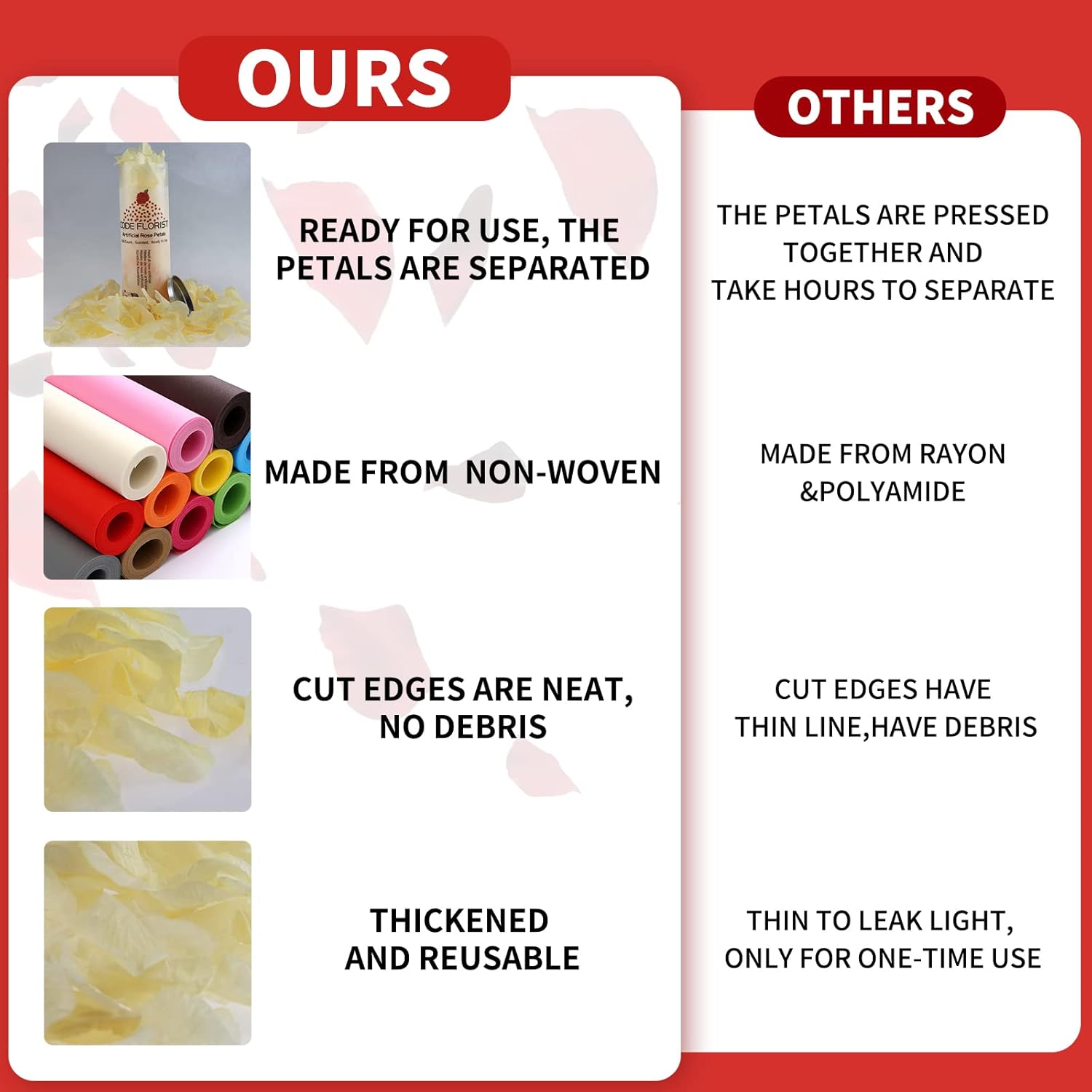 - Widely Use: They are ideal decorations for romantic night for him or her.Also used for wedding flower girl petals,proposal decorations,flower aisle runner,or simply as red table decor.Buy more to use in larger events such as Valentine's Day,party,etc.