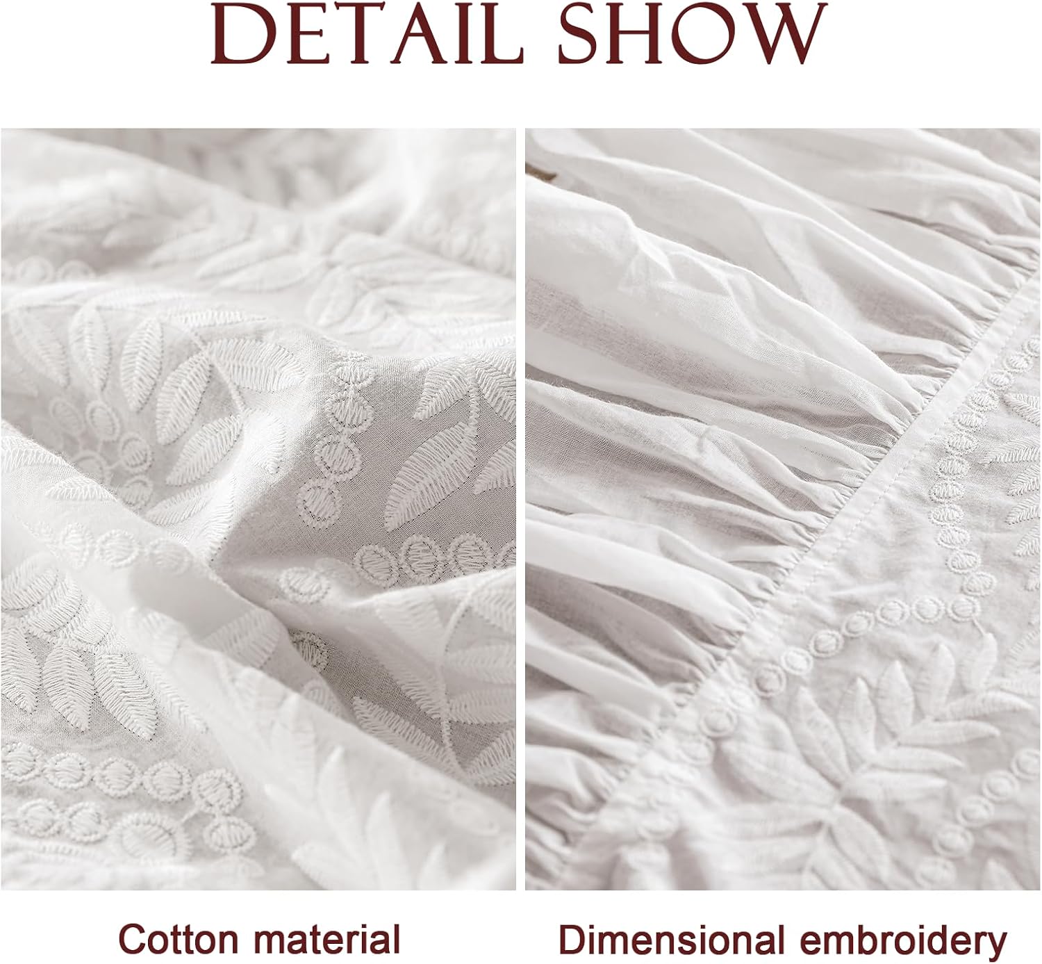 patdrea Vintage Ruffle Tablecloth for Rectangle Tables,Farmhouse Embroidered Cotton White Lace Table Cloth Cover Decor for Dining Room Wedding Banquet Thanksgiving Christmas,59"*75"