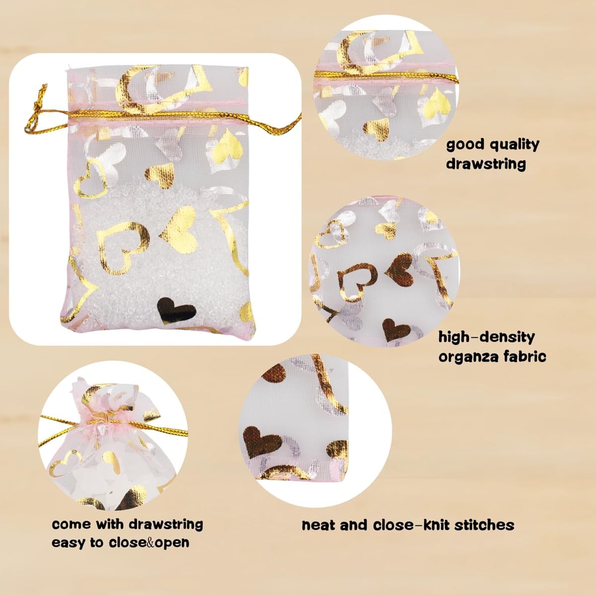- OCCASIONS : Use these organza drawstring bags to present Baby Shower gifts, Bridesmaid gifts, Jewelries, Wedding favors, Lavender Sachets, Rice tossing, Thank you gifts and any other types of favors or mini gifts.