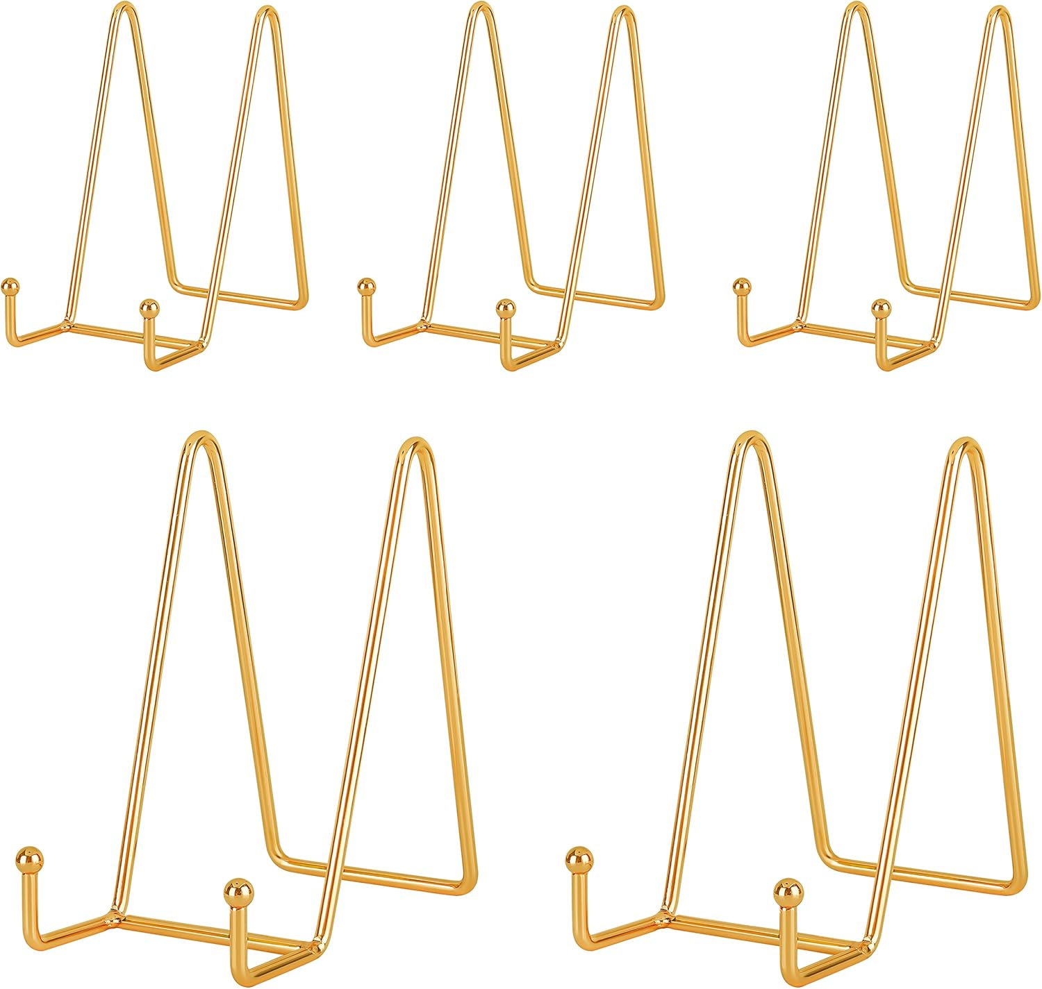 IBosins 5 Pack 6 Inch Plate Holder Display Stands, Metal Gold Frame Stand for Picture, Book, Photo Easel, Creation, Collectibles