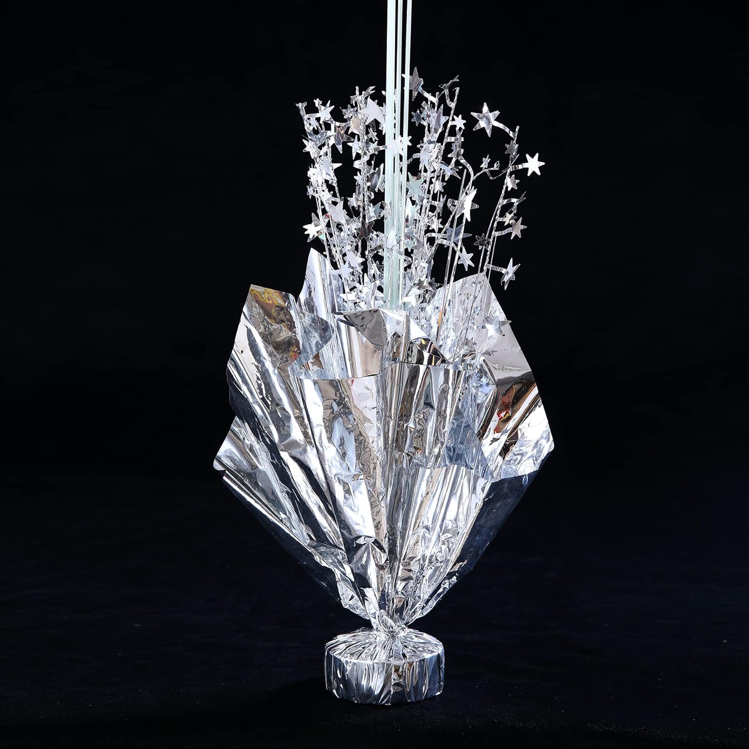 - Silver Balloon Centerpiece Kit Includes: 2 reusable silver balloon stands for table (including 2 silver foil star spray bases, 6 sticks, 6 stick connectors, and 12 cups) and 12 12-inch latex balloons, providing everything you need to create stunning table centerpieces