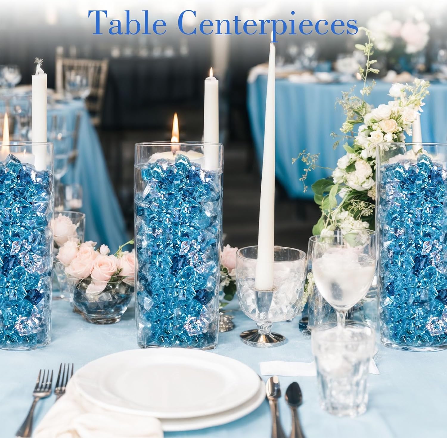DomeStar 1050PCS Mixed Blue Fake Ice, Fake Diamonds, Vase Fillers Clear Rocks for Fish Tank Table Scatter Decor