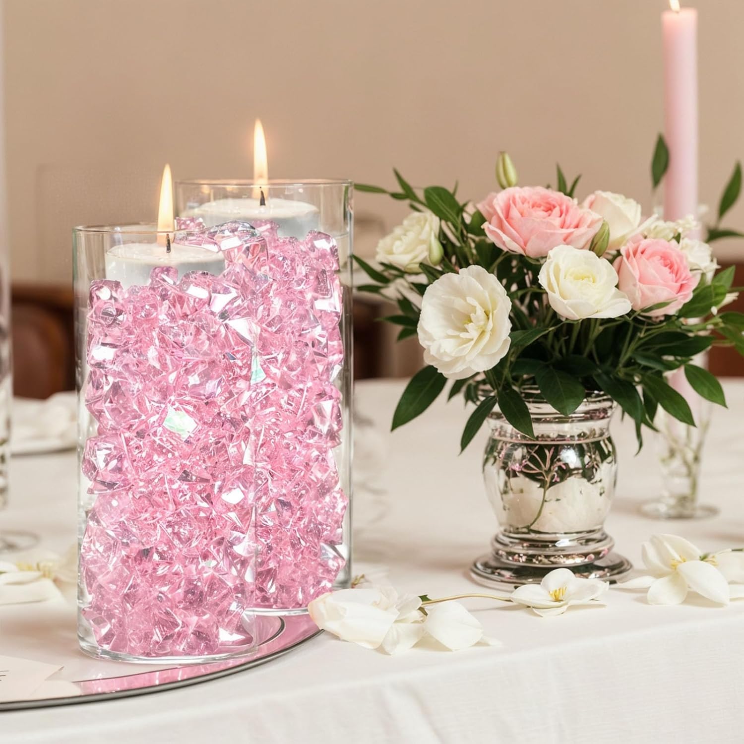 DomeStar Dazzling Pink Ice Rocks, 180PCS Holographic Acrylic Crushed Ice Sparkling Fake Diamonds Holographic Plastic Gems for Vases Fillers Table Scatter Decoration