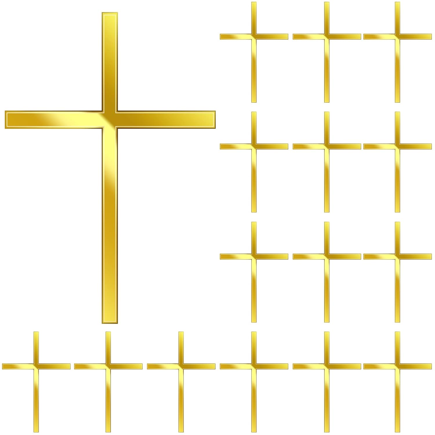 Blulu 16 Pieces Baptism Cake Toppers Crossing Cupcake Toppers Gold Mirror Acrylic Cake Picks Baptism Decor Christian Decorations(Vivid Style)
