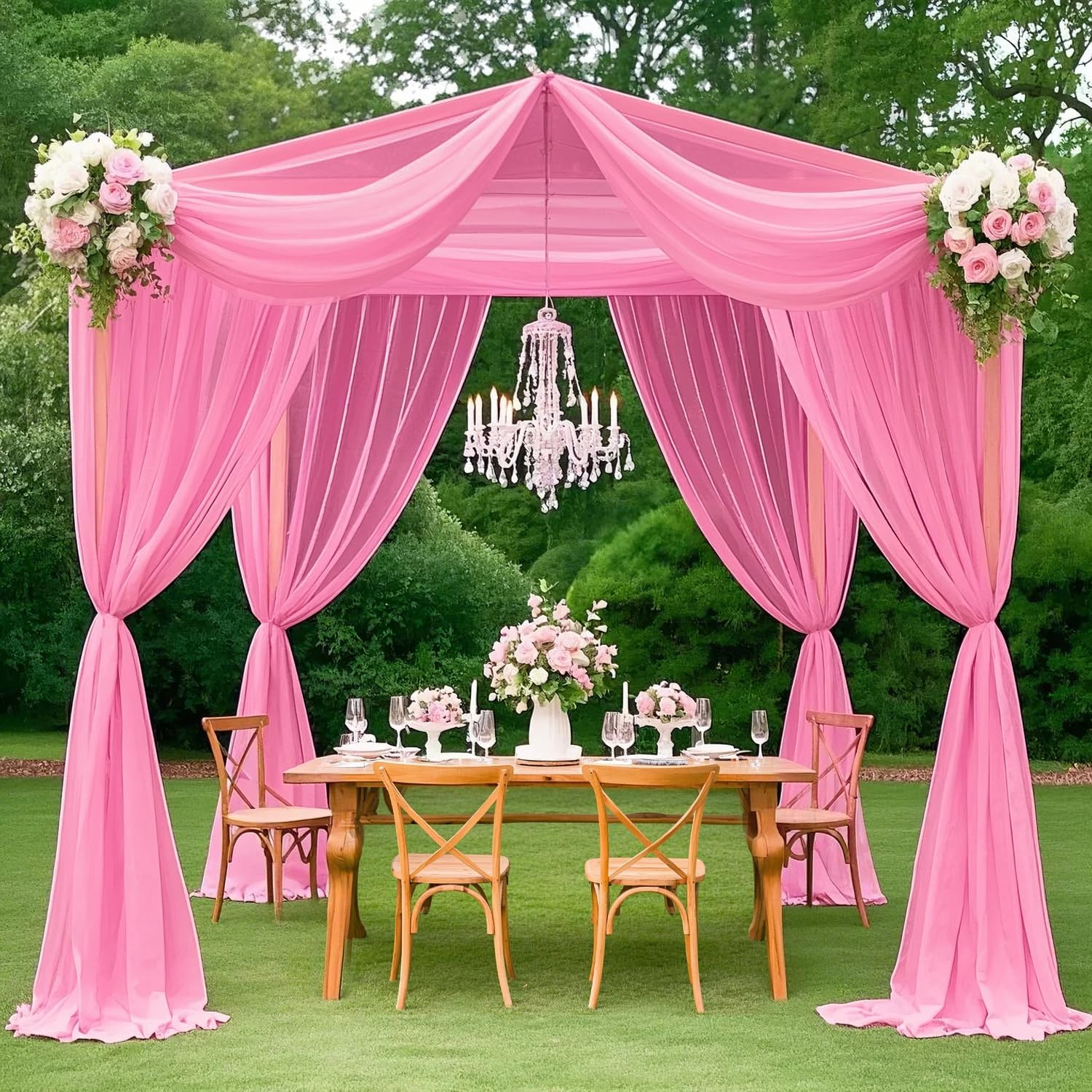 - ⭐Quality Material - Pink Ceiling Drapes: The material of chiffon curtain is premium sheer chiffon fabric, silky soft and wrinkle-free, sturdy and reusable. More graceful than other nylon fabrics. All edges of sheer fabric for draping arch are finished with with nice stitching. The wedding drapery is a good choice for party decoations, giving your events an elegant and romantic look.