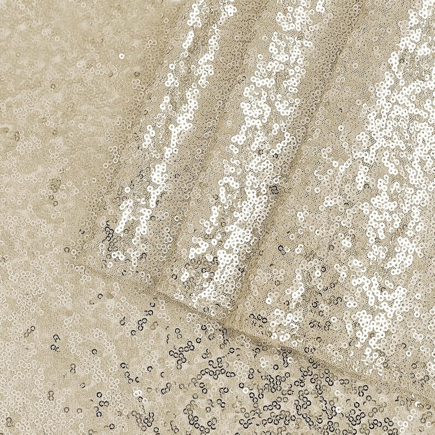 OQSQ Champagne Round Sequin Tablecloth, Glitter Tablecloth for Bridal Shower Decorations, Birthday, Wedding, Dessert, Banquet(50X50 inch Round,Champagne)