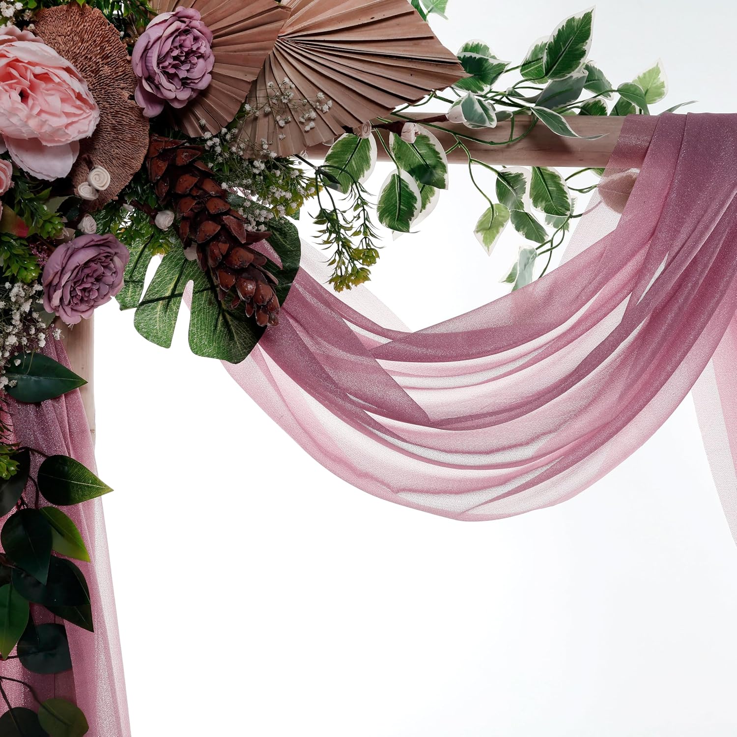 VDS Pack of 1 Panel (30 Inch X 20 Feet) Wedding Arch Draping Fabric Sheer Chiffon Fabric Drapery for Wedding Ceremony Reception Swag Backdrop Canopy Chuppah ARBO Altars Decoration (Mauva)