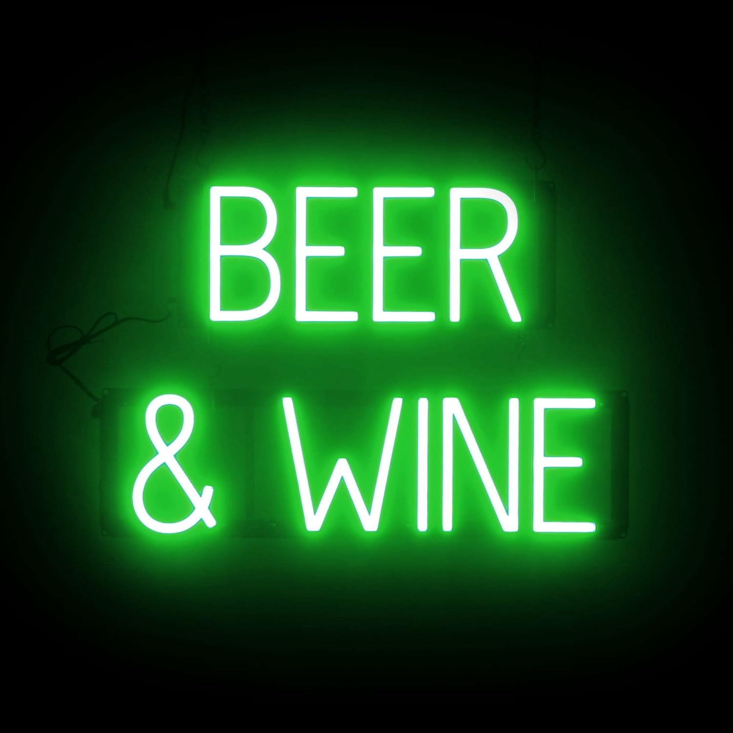 SpellBrite BEER & WINE Sign | Beer-Related Sign with Neon Look, Green LED Light Source | 22.0" x 15.0"