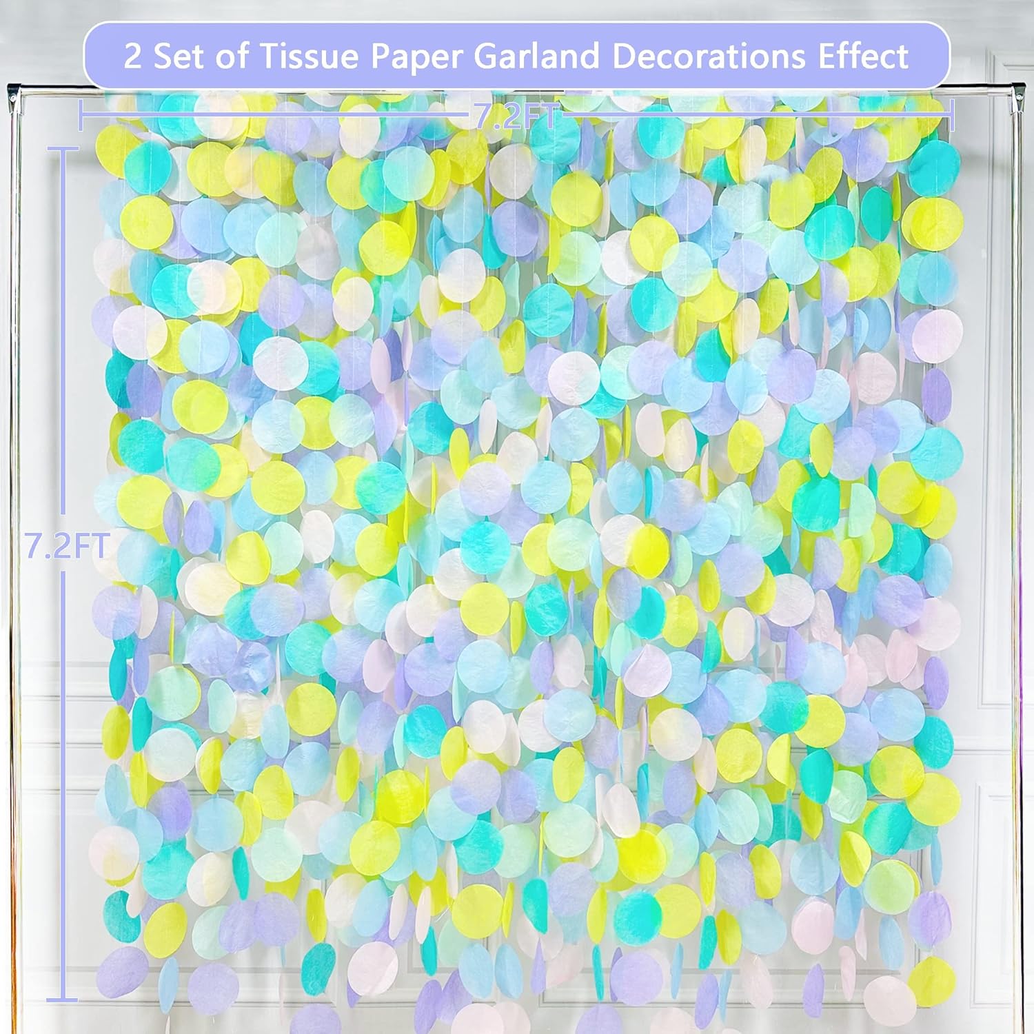 - ENVIRONMENTAL MATERIAL-Our pastel big circle dot streamer garland are made of high quality tissue paper,carefully hand-made and machine-sewn together with thread.durable and reusable.Unroll & unwrap the tissue paper garland carefully. Due to delicate nature of thread, may tangle.