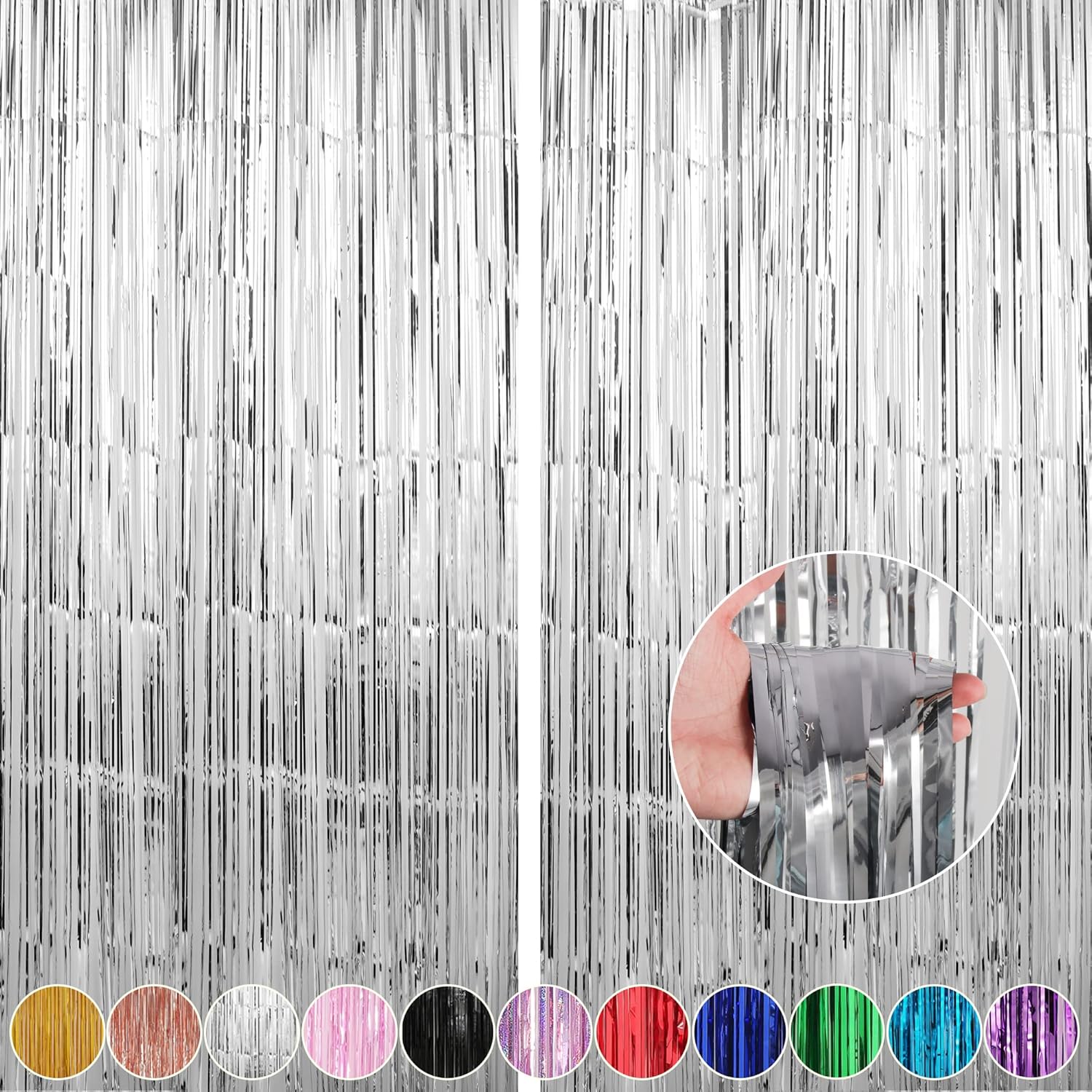 - Easy to Use - The foil curtain backdrop comes with double sided tape on the top, peel plastic strip off and it would be very easy to paste on smooth surfaces such as wall, window, table, door or anywhere you like. You can cut the foil curtain with scissors into the suitable Length, assemble the party streamers side by side to make the silver backdrop larger, or layer the backdrop curtains to get a thicker effect.