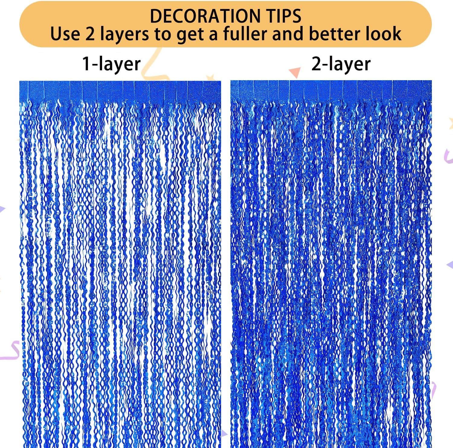 - LATEST Shiny Surface and Wavy Shape Tinsel Backdrop:The navy blue foil curtain backdrop is made of aluminium foil with shiny surface wavy shape, good for adding sparkle as decorations for parties