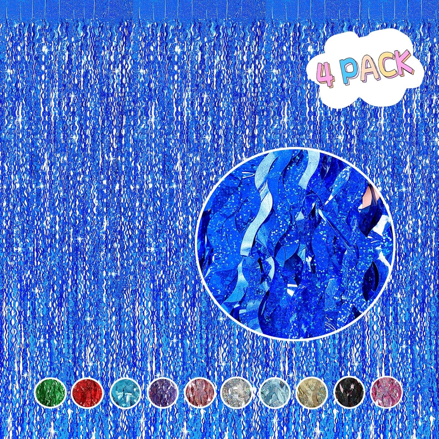 - Packing Included:4 packs tinsel foil fringe curtains party photo backdrop,Each pack curtains size is 3.3ft x 6.6ft, enough length for decorate your party