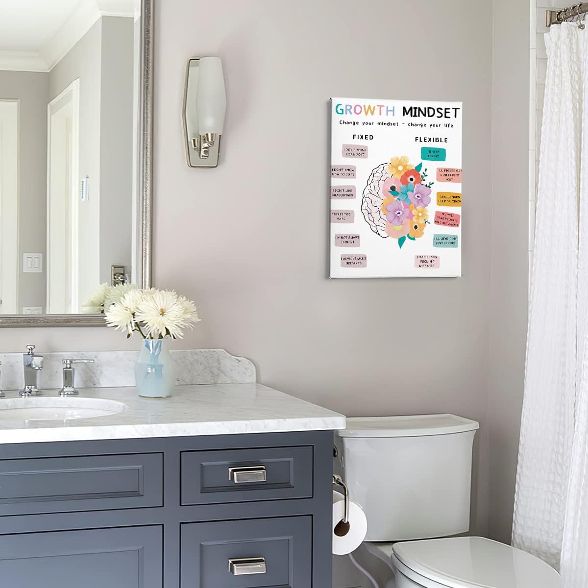PHAMTE Mental Health Change Your Mindset Change Your Life Wall Art,Growth Mindset Flower Brain Art Print Framed Canvas Painting Artwork for Counselor Office Therapy Office Decor(11x14 Inch)