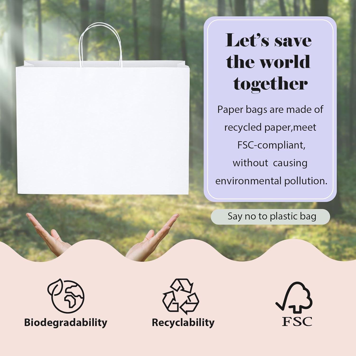 GSSUSA Large Paper Gift Bags 16x6x12'' 25Pcs White Paper Bags with Handles, Shopping Bag for Small Business, Sturdy Kraft Paper, for Boutique, Party Favor Bag, Valentine's Day Craft