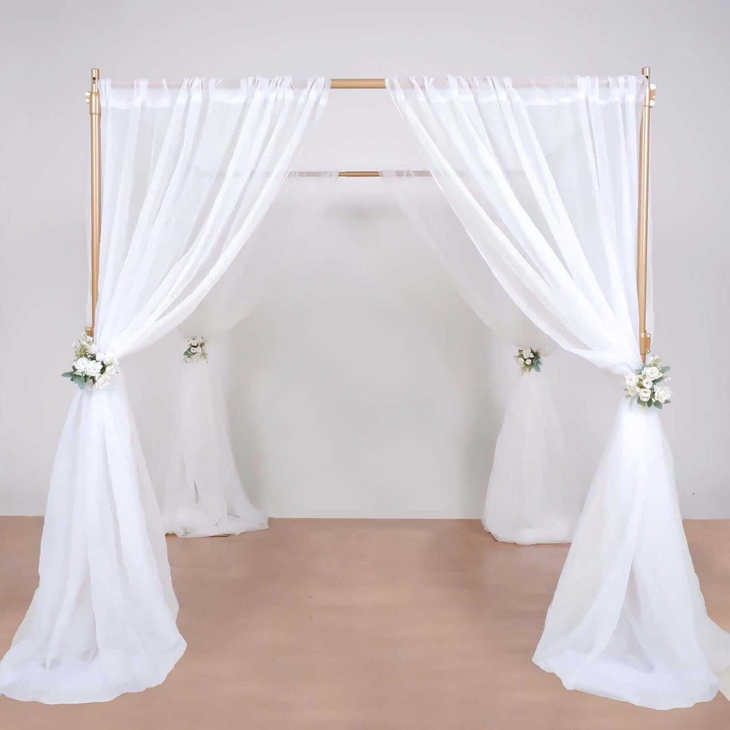 Tableclothsfactory 10ft | 4 Post Gold Metal DIY Photography Backdrop Stand, Wedding Arch Canopy Tent