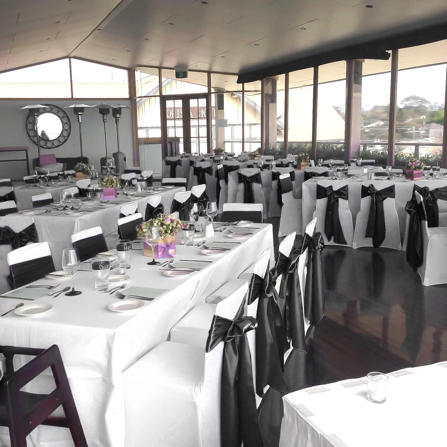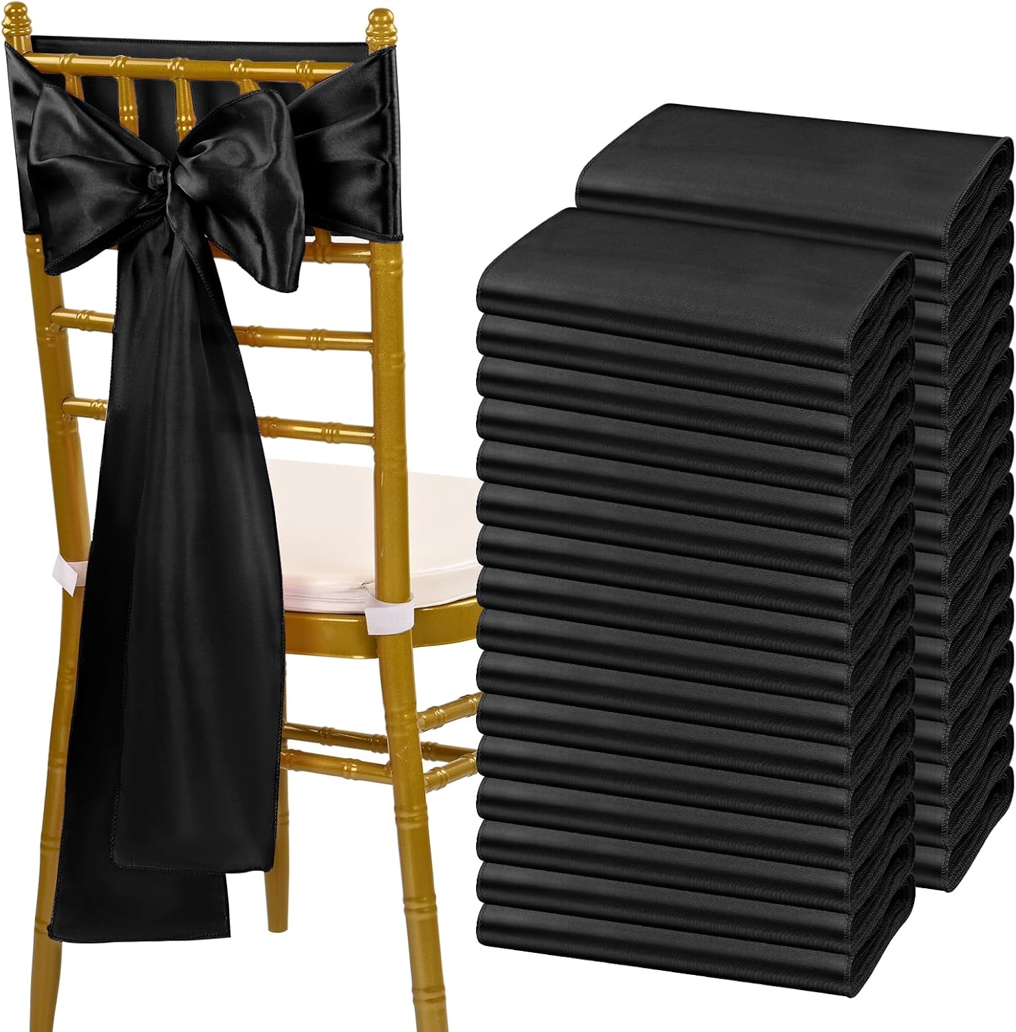 - 🍕【Package Include】Pack of 120 satin chair sash.Size: 7" x108" or 275cm(l) x 17cm(w).Each package includes chair sashes only, without chair covers.These chair ties bring a modern twist to your chair's settings and let your chairs sparkle brightly. Satin sashes can be tied into wedding chairs, draped across any decoration, or used as attractive table runners.