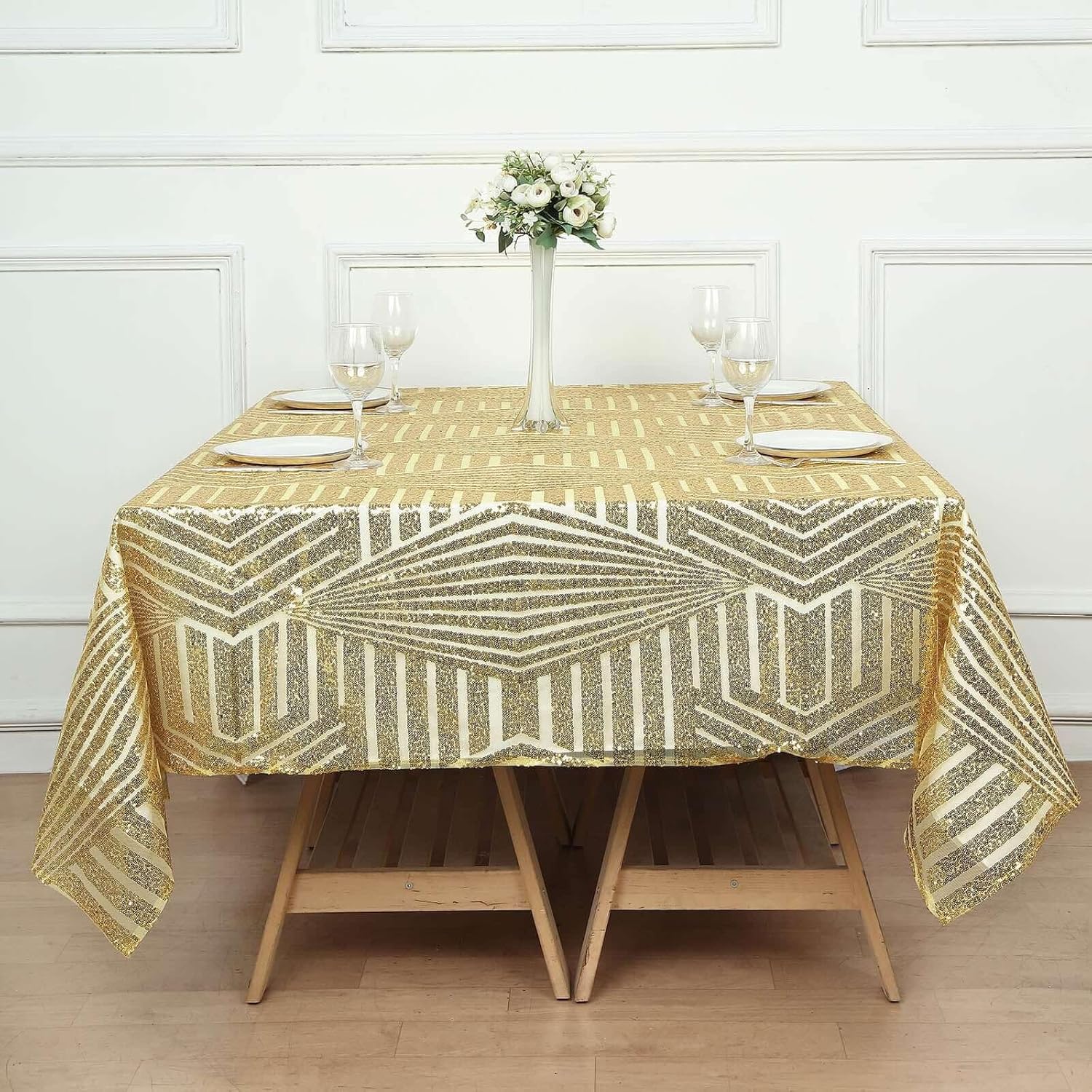 Efavormart 72" Gold Sparkly Sequin Geometric Tulle Square Table Overlay