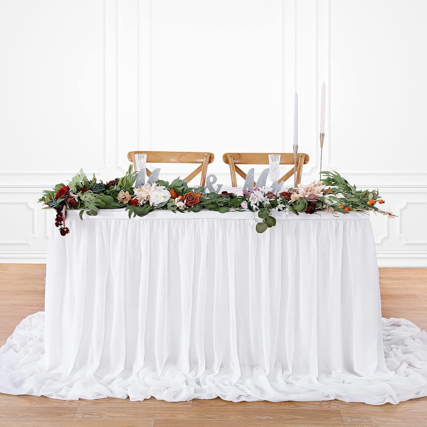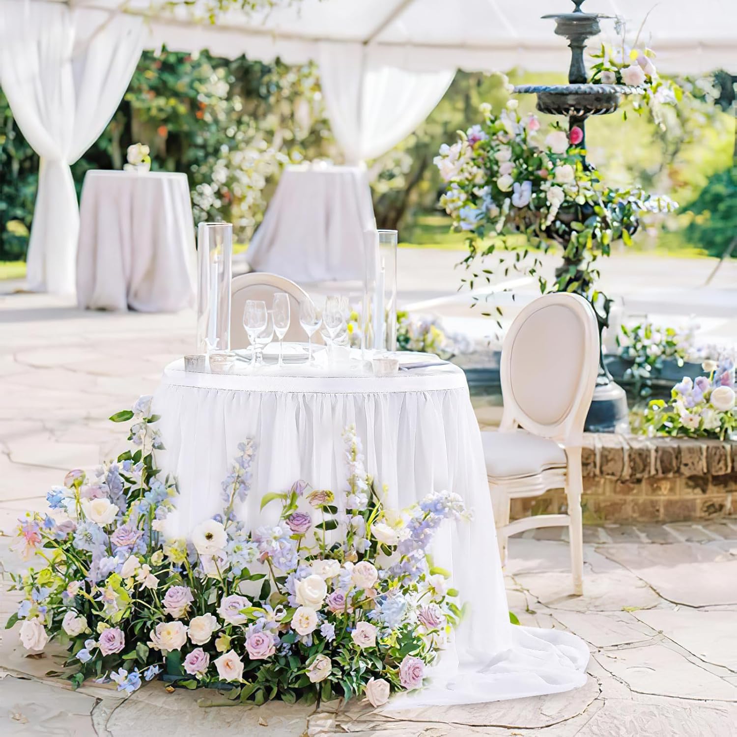 - π‘ White Table Skirt Material: The extra long chiffon table skirt is made of Sheer Chiffon which is wrinkle-free, soft, and with a nice drapery. Table skirt both robust for kids birthday party supplies and elegant if used for wedding decoration.