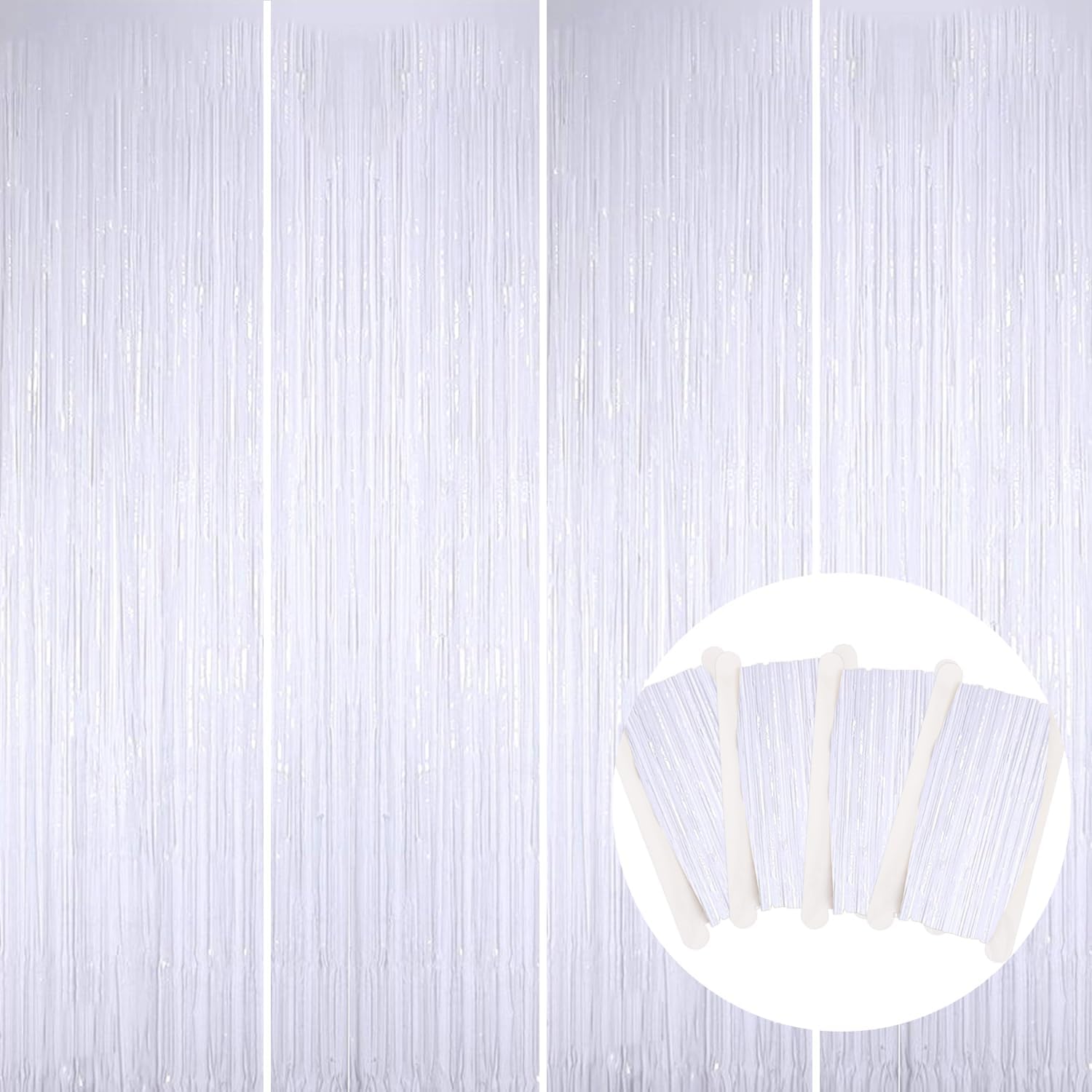 BEISHIDA 4 Pcs White Door Streamers Tinsel Curtain Party Streamers Backdrop Fringe Foil Wall Background for Birthday Halloween Christmas Wedding Party Decoration(3.28 ft x 6.56 ft)