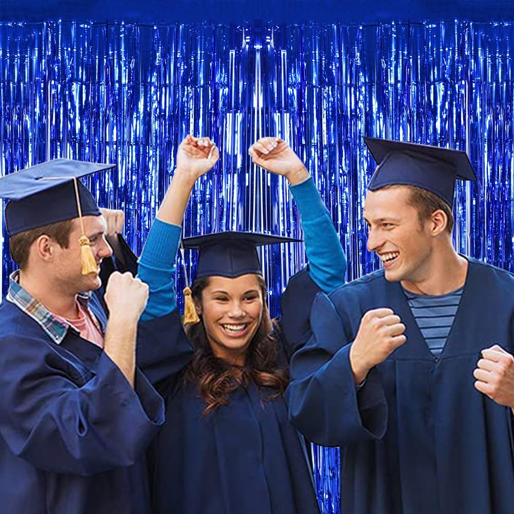 - Blue Party Streamers Size - The 4 pack streamers curtain size is 6.56Ft(Length) X 3.28Ft(Width). The fringe backdrops are perfect to make an elegant entrance curtain for your party decorations.