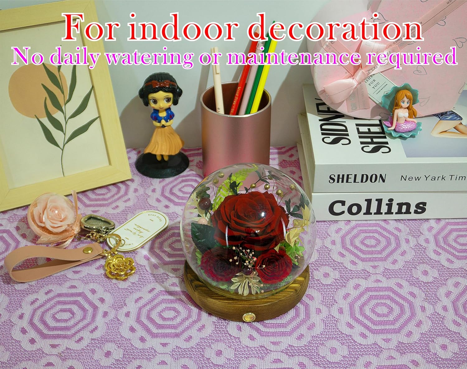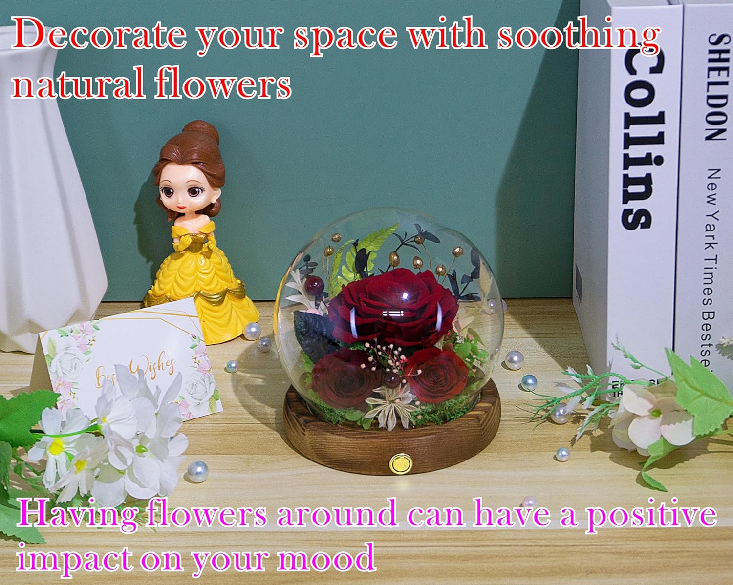 - ♥Please note♥:1. Due to the delicateness of natural flowers, opening the glass dome is not recommended as it can lead to unintended damage to the flowers. 2. Since these are real flowers crafted by hand and not mass-produced by machine, there may be slight variations in certain cases. 3. loose and incorrect battery insert will result in lights not turning on. If that's the case, simply remove the batteries and reinsert them correctly. 4. We've recently made new improvements to our products for you. For more details, simply go to the bottom of this page.