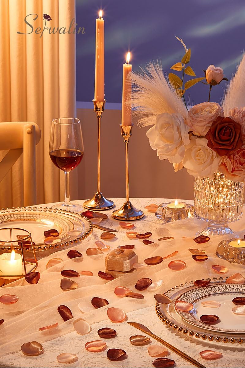 Serwalin 300Pcs Silk Rose Petals Artificial Flower Petals for Weddings Fake Rose Brown Petals Proposal for Wedding Basket Aisle Runner Bridal Shower (4 Color Mixes)
