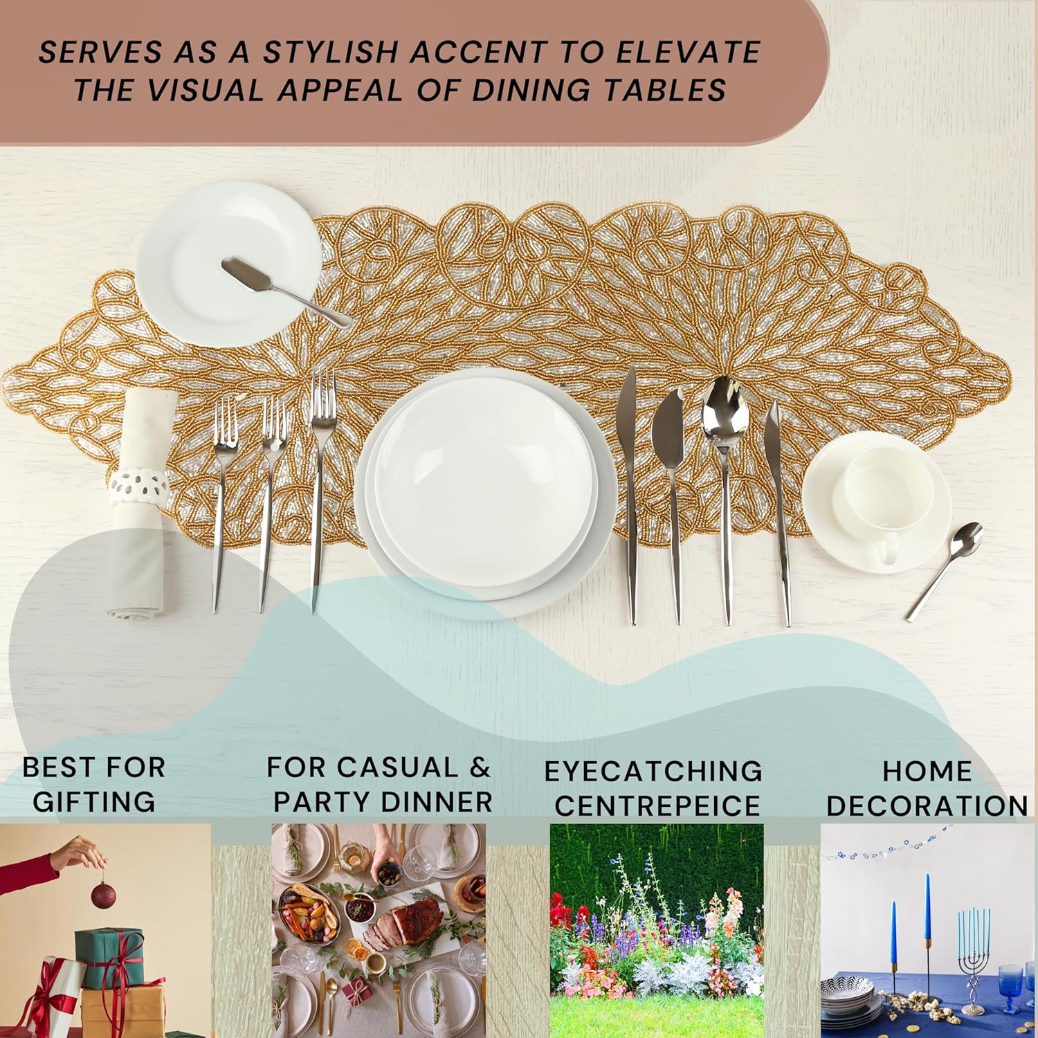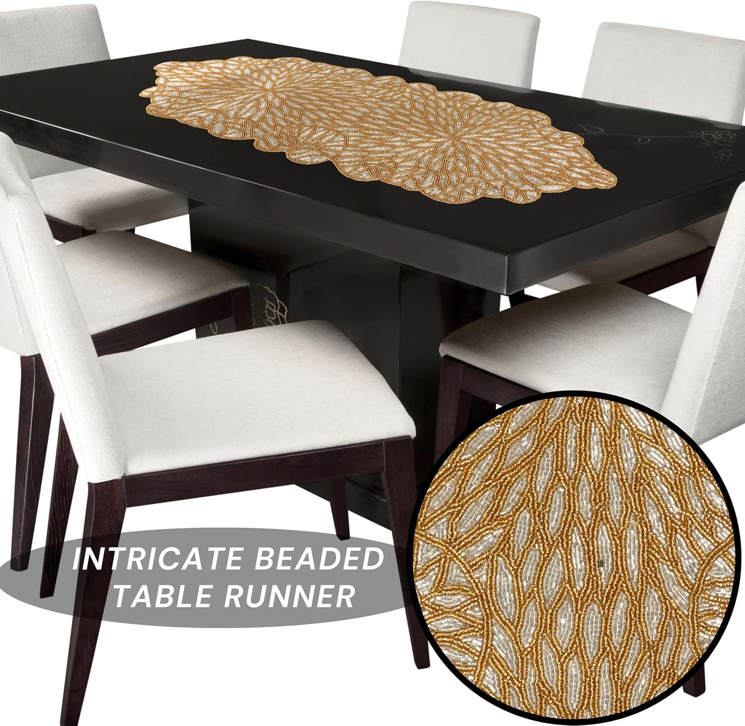 - ✅ PERFECT SIZE & PACK - 13 x 36 inches gold toned beaded table runner: Ideal for most dining, coffee, and console tables.