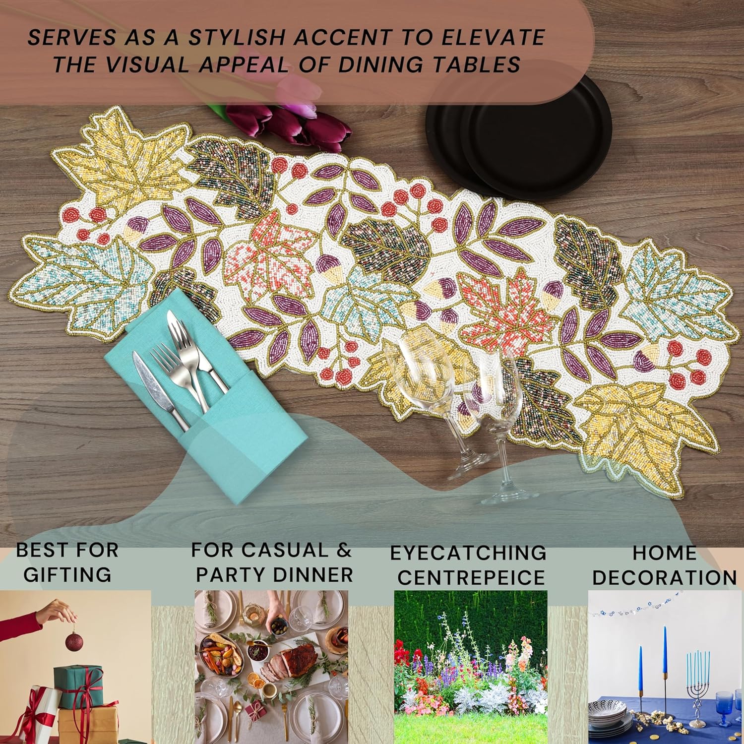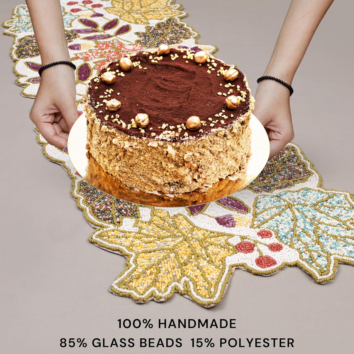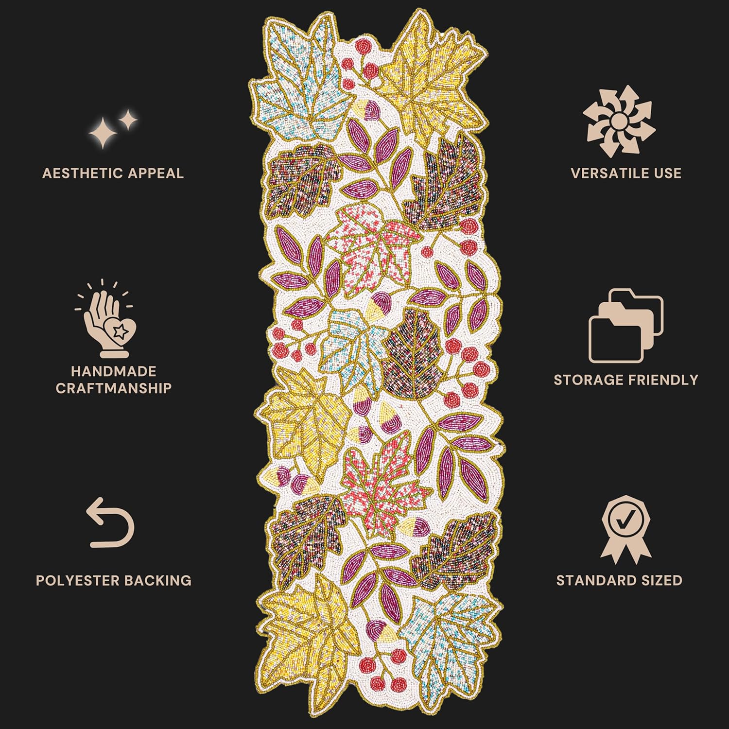36" Hand Beaded Decorative Farmhouse Glitz Table Runner for Tabletop, Wedding, Thanksgiving, Easter Party Decorations - A Beautiful Complement to Your Dinner Table Décor (Multi) - CLEENTABLE