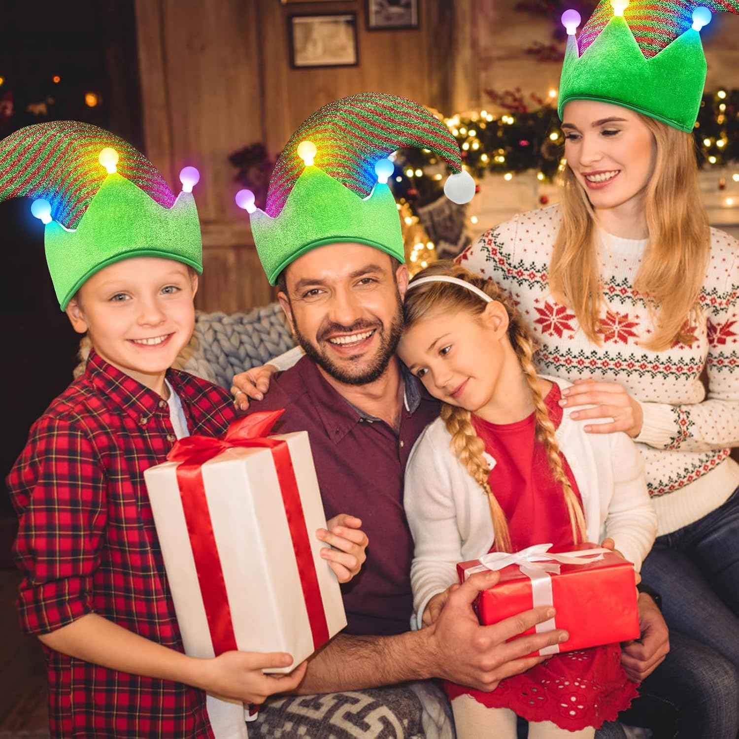 - Christmas LED Party Hats:it will shine brilliantly when you turn it on( AA batteries not included);Suitable for holiday parties, Christmas, plays and pageants;Get your elf on this holiday season and stand out from the crowd in this adorable accessory