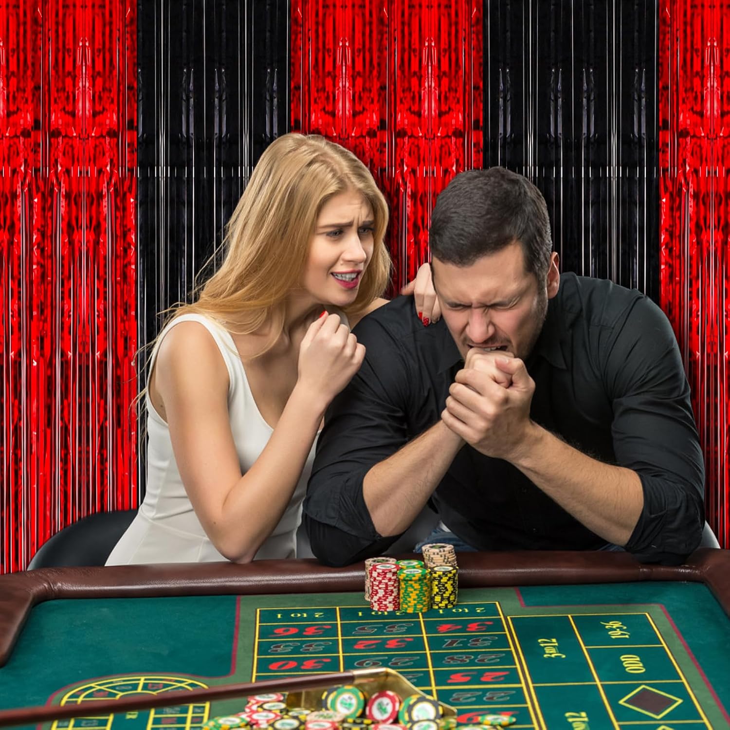 - Premium Material: This Red and Black foil curtain backdrop is made of stable tinsel, non-fading, stay shiny and reusable. Unfold it and then enjoy your glittering party