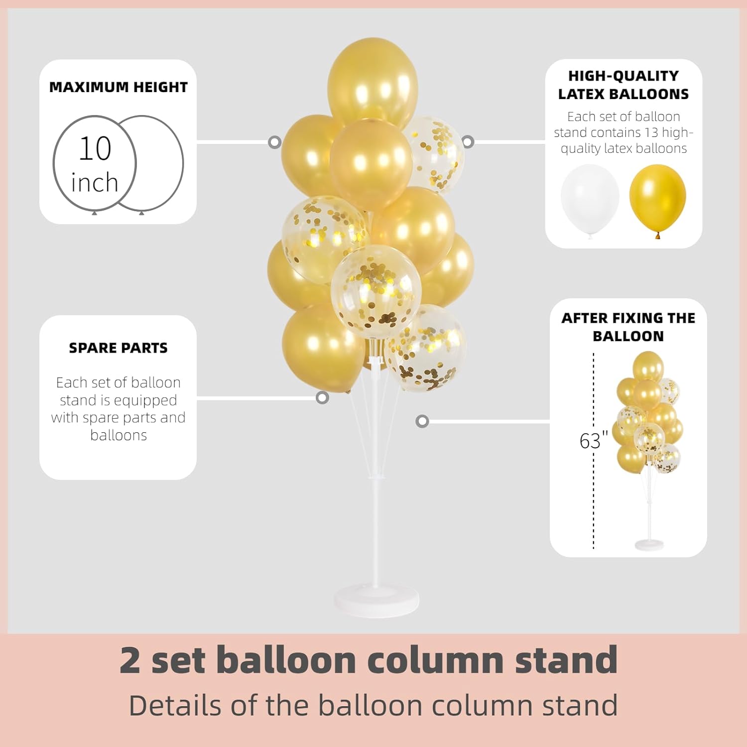 Balloon Column Kit Set of 2 With Confetti Balloons Included - Balloon Tower with Stand, Base, and Pole,Backdrop Decoration for Wedding, Baby Shower, Birthday Party, or Bachelorette Parties (Gold)