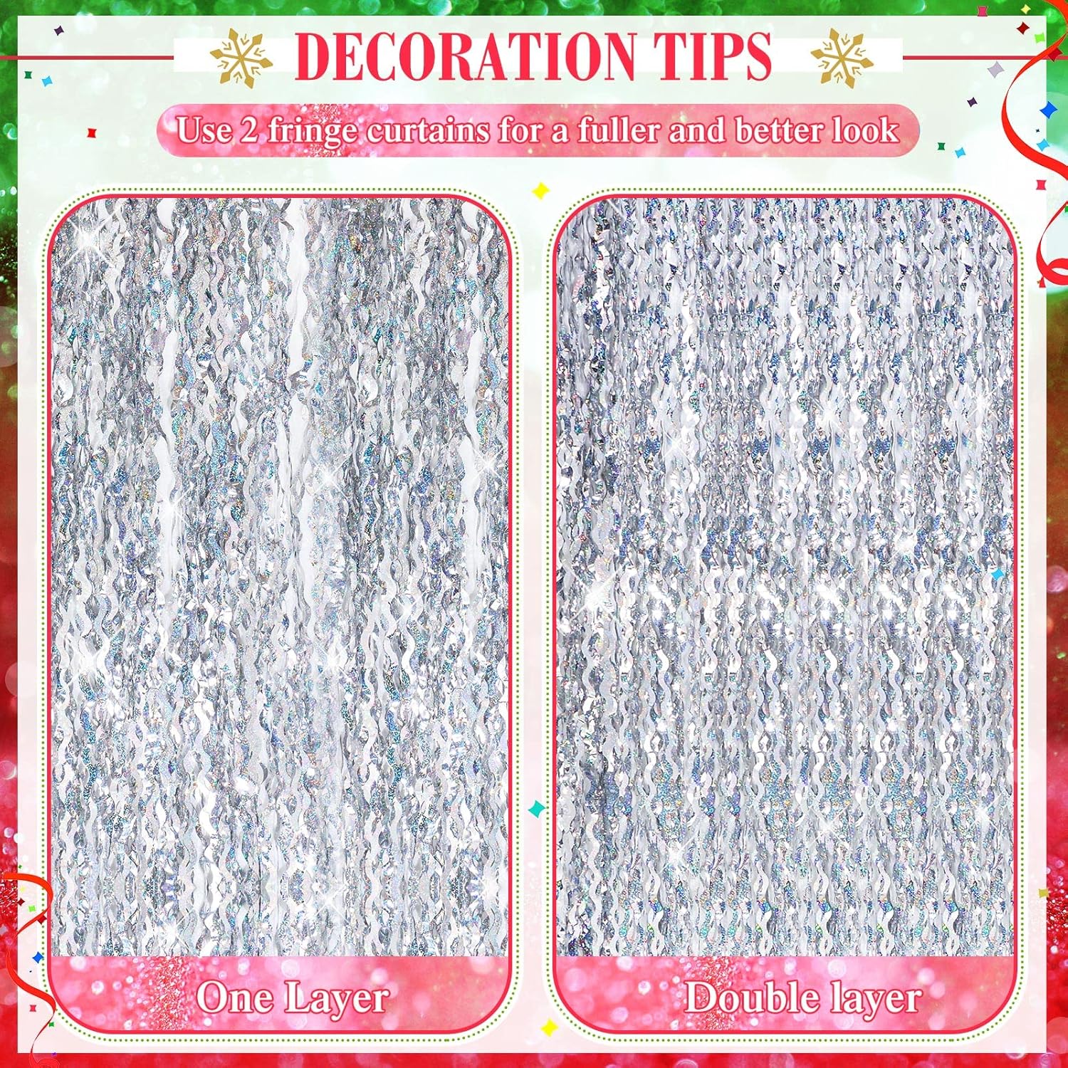 10 Pieces 3.3 x 6.6 Ft Foil Fringe Backdrop Party Wavy Tinsel Fringe Curtain Streamer for Happy New Year Carnival Party Favor 80s 90s Disco Ocean Sea Mermaid Birthday Wedding(Silver)