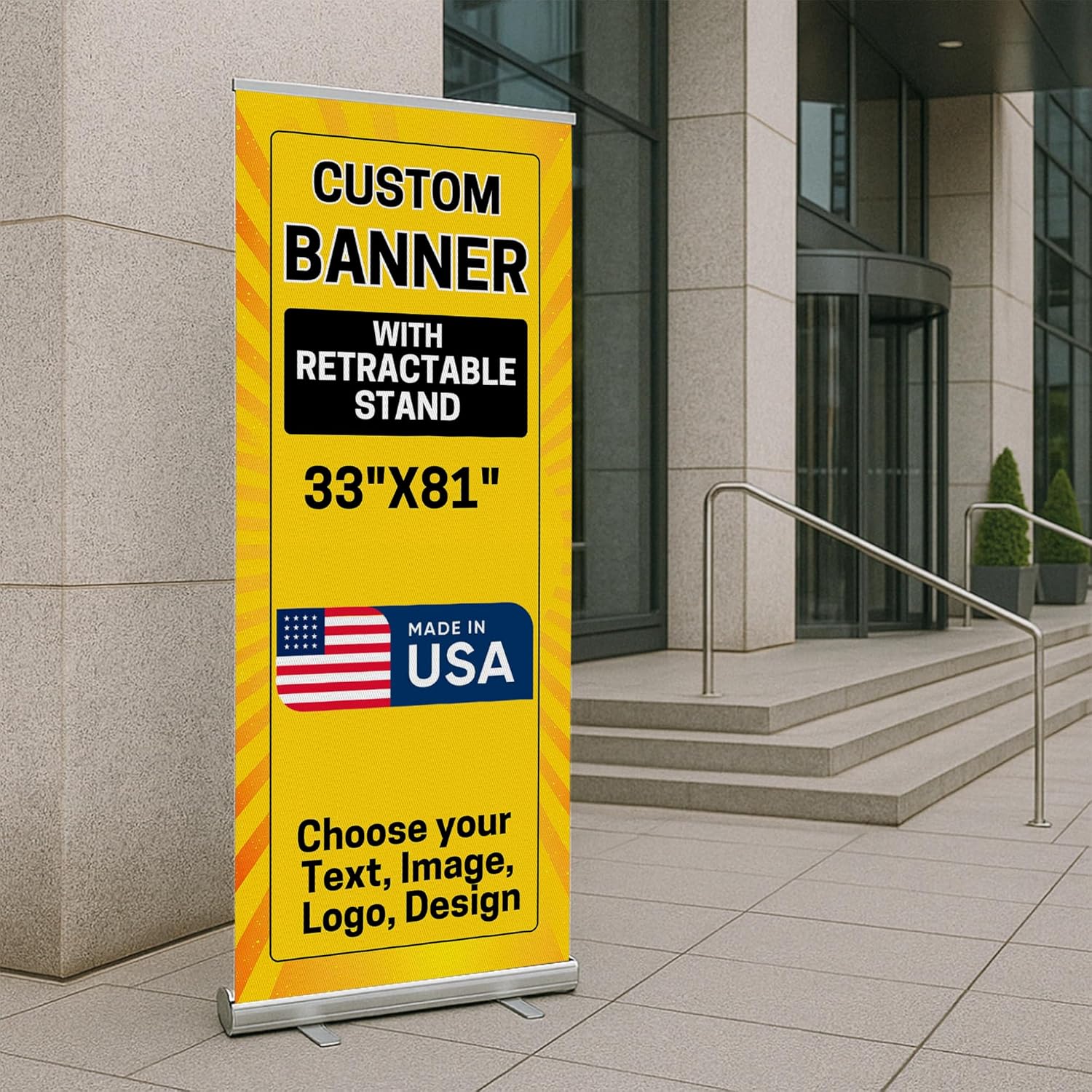 - Made in the USA: Our retractable banners include a customizable high-resolution graphic banner and a durable roll-up stand. Need assistance with design, ordering, or installation? Our in-house design team is here to help!