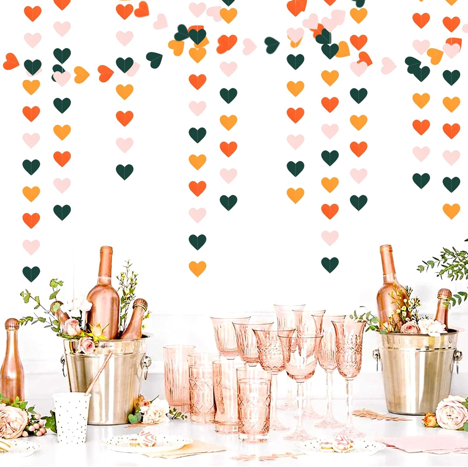 Pink Green Orange Party-Decorations Heart-Garland - 52ft Little Cutie Baby Shower Hanging Decoration Streamers Banner,Wedding Bridal Shower Birthday Spring Summer Fall Autumn Decor Panduola