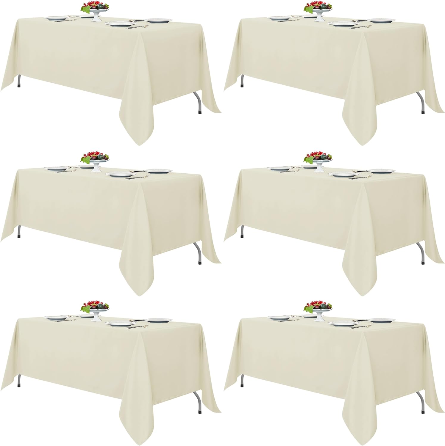 Fitable Ivory Rectangle Tablecloths for 6 Foot Tables, 6 Pack - 70 x 108 Inches - Stain Resistant and Washable Table Clothes, Polyester Fabric Table Covers for Wedding, Party, Banquet, Buffect