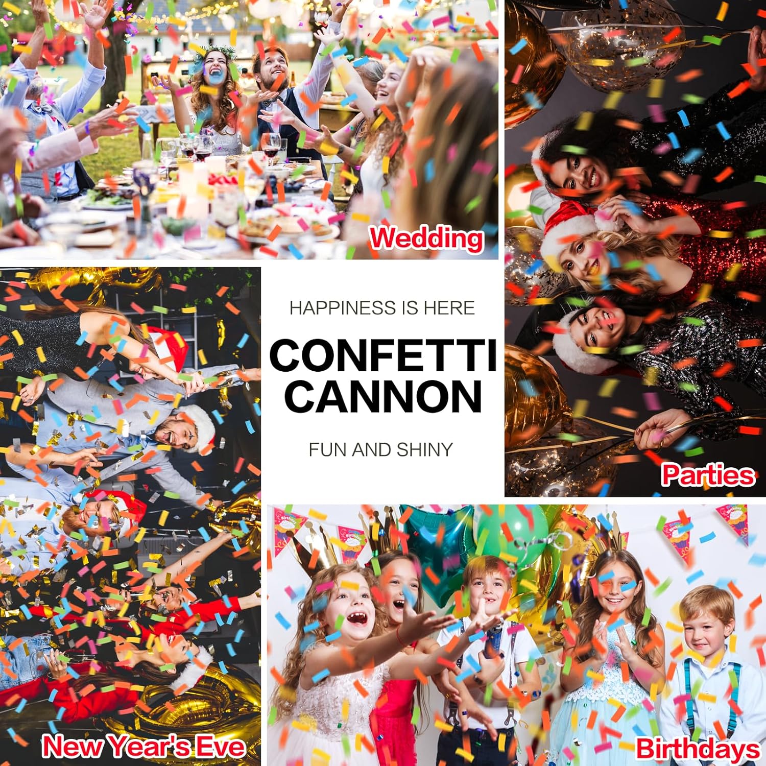 - 【PARTY POPPERS FOR CELEBRATION】Elevate the excitement at any event with our party poppers confetti shooters! Whether it's a wedding, birthday party, Christmas celebration, graduation, family reunion, or any occasion where you want to ramp up the glamour, these confetti popper cannon are the perfect choice. Get ready to infuse your gathering with a burst of fun and festive energy that will leave your guests delighted and create unforgettable memories!