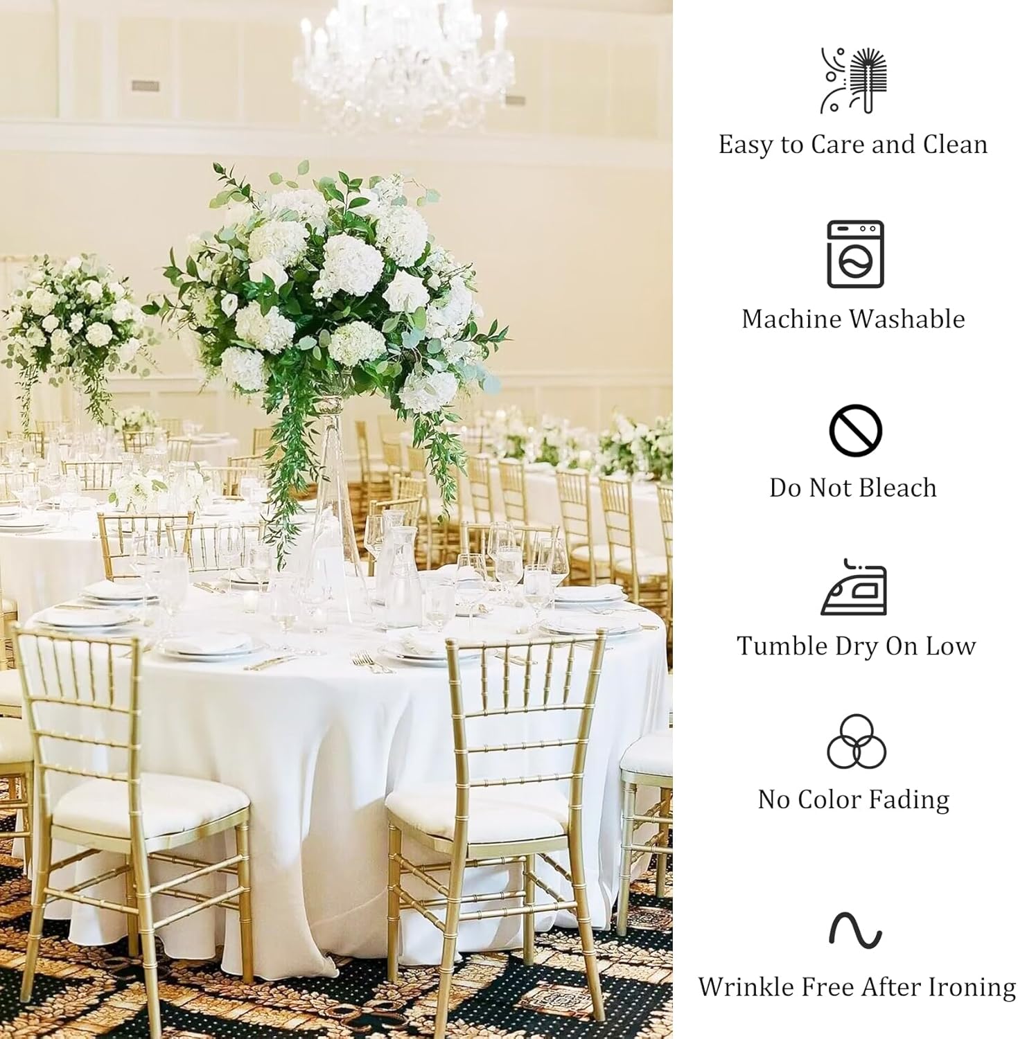- Easy to Clean: these circle tablecloth are easy to clean, machine washable and hand washable, tumble dry on low, won't fade, won't tear easily, no bleach, wrinkle free after Ironing, easy to care than most cotton tablecloth. Simple ironing after cleaning will keep them looking new.