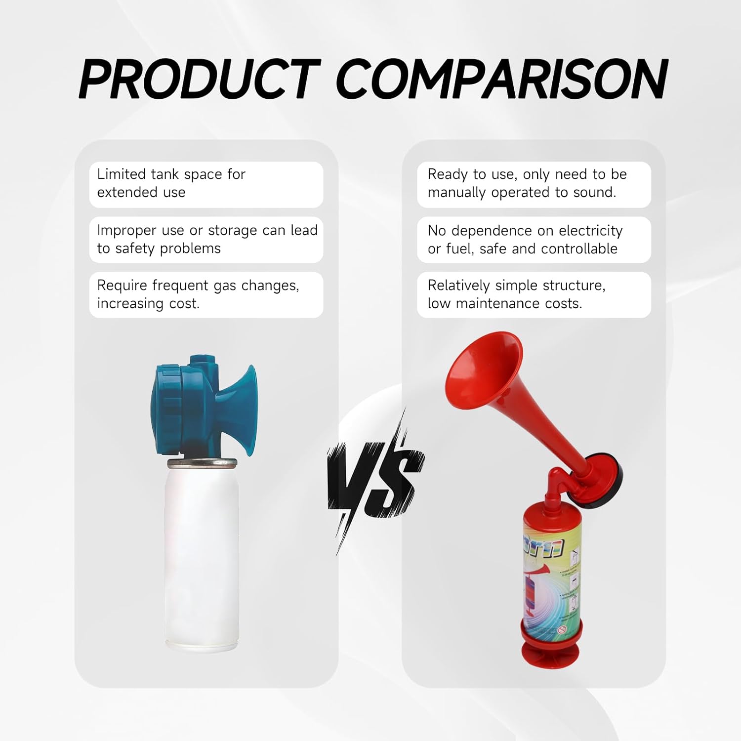- 【High Quality】The handheld air pump horn is made of high quality Plastic lmaterial, which has sturdy, anti-rust, durable in use.strict full tested to ensure the best quality before shipment, safe to use.