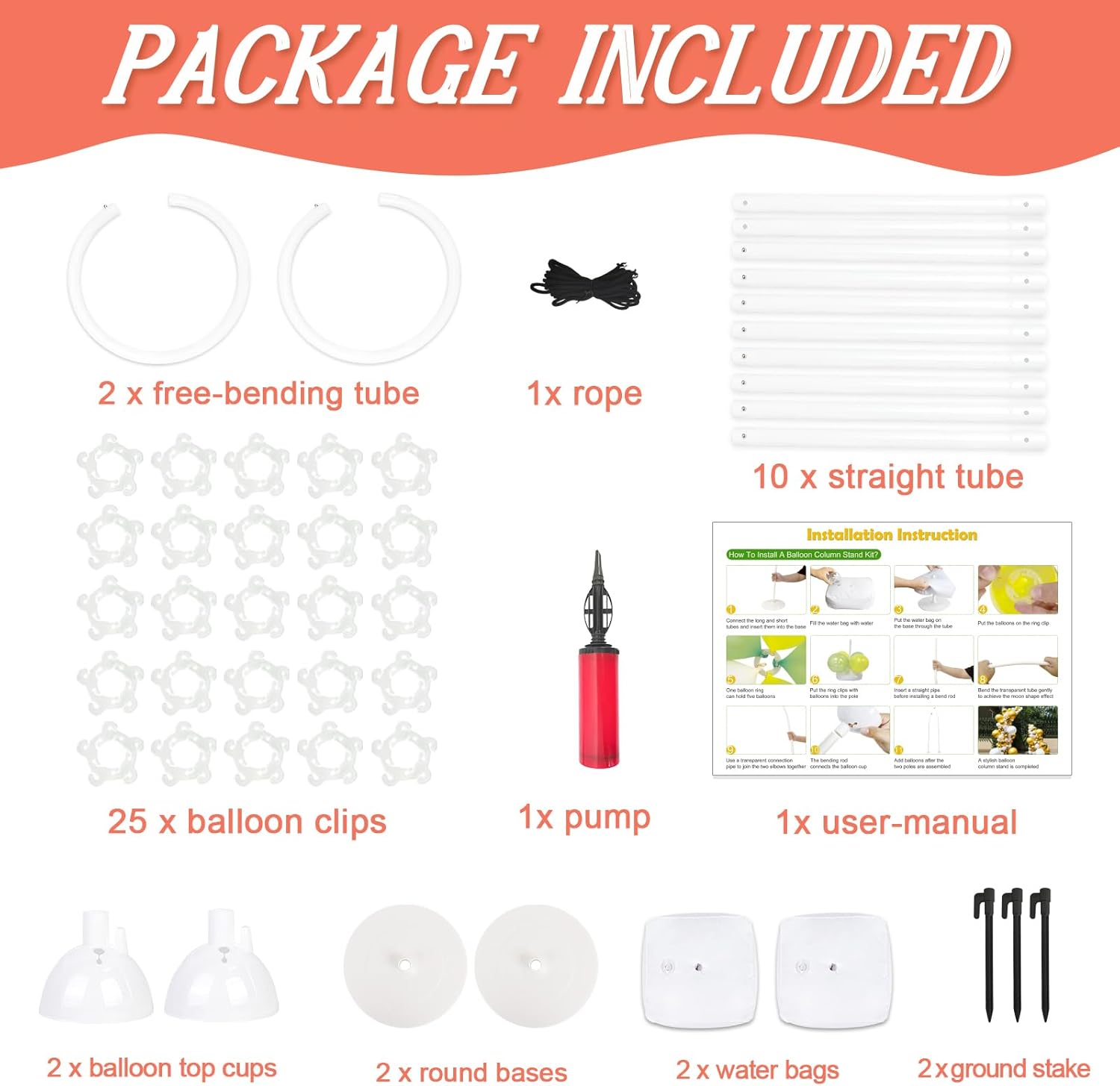 - Complete Package: Includes curved top arch stand, water fillable bags, heavy-duty PVC bases, connectors, and balloon ring clips.