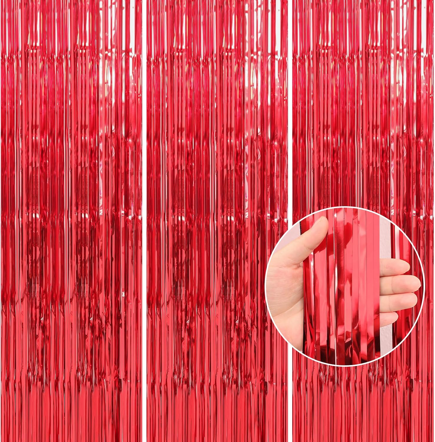 - Customer Service - 2 packs of foil fringe curtains, the size of each tinsel curtain is 3.3 ft x 9.9 ft, enough length for hanging on a door or covering a wall fully, suitable for any parties. If you are not satisfied with our foil fringe curtains party decorations, Please contact us we guarantee to give you 100% full money back.