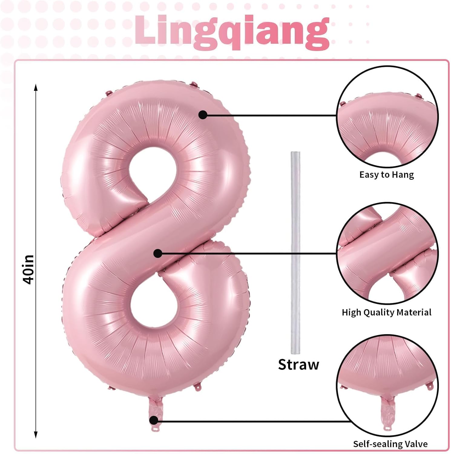 - š Repeated Use š - The pastel pink number 8 balloons set contains a straw that can be used to deflate the foil balloon, simply insert the straw into the valve and press gently until the gas is completely expelled. After use, it can be folded and stored for reuse.